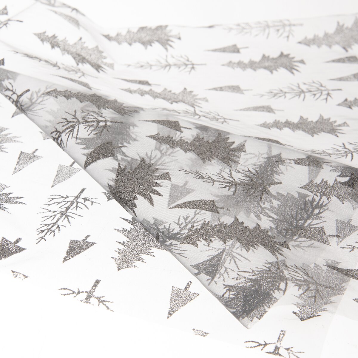 Kód produktu 728021Priehľadný behúň s motívom strieborných stromčekov, vyrobený z polyamidu, je určený na stred stola. Ozdobí sviatočný stôl v kuchyni, jedálni aj obývacej izbe.