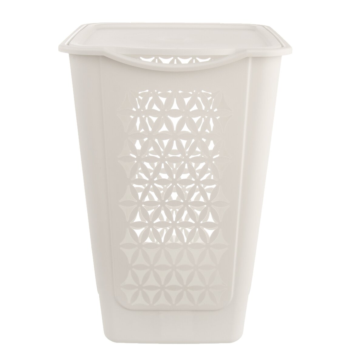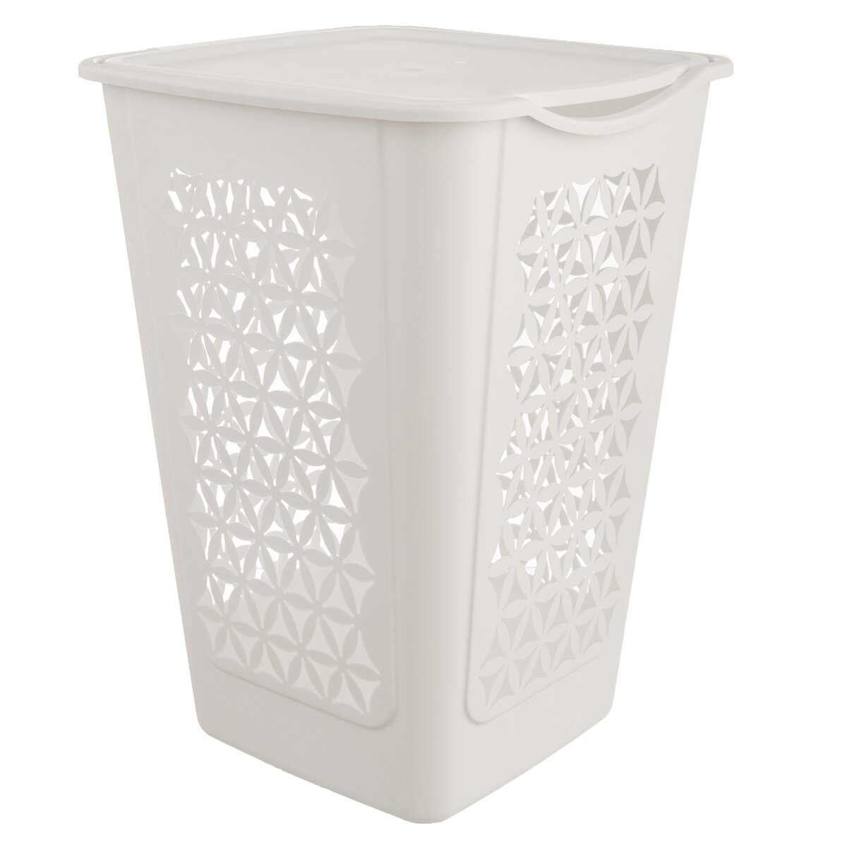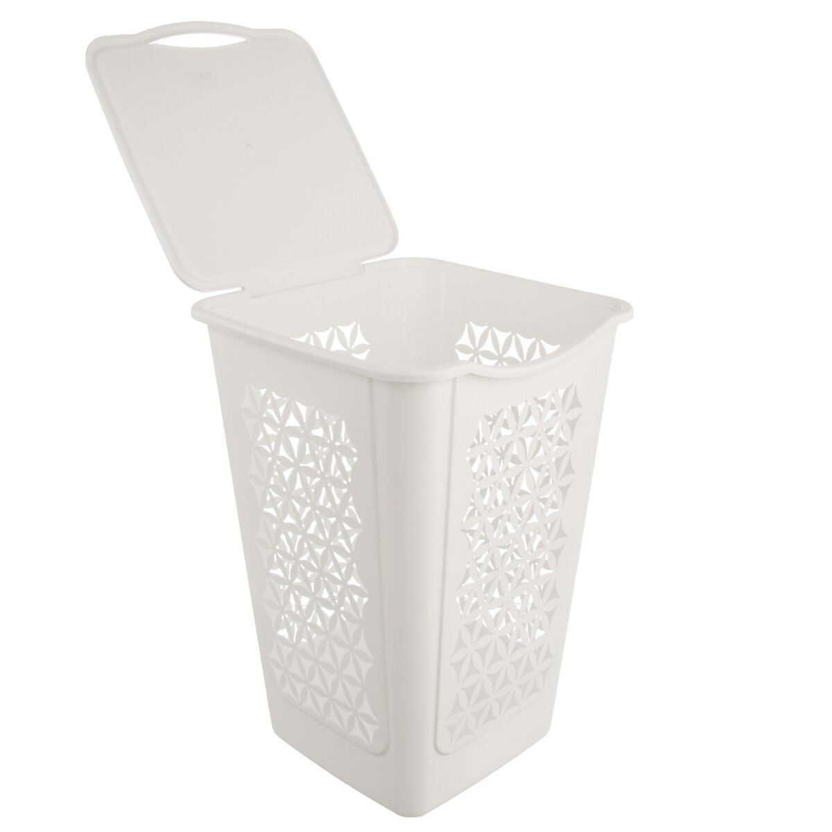 Kód produktu 730551Biely plastový kôš BLUMA s vekom a zaujímavým dierovaným povrchom, vo veľkosti 38x38x54 cm, využijete na špinavú bielizeň.