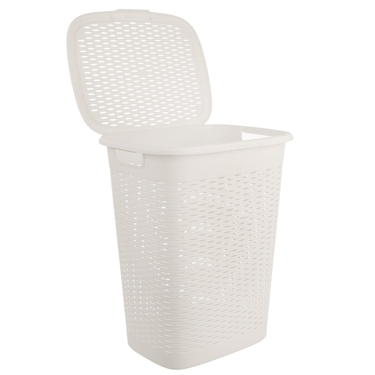 Kód produktu 730542Biely plastový kôš LOOP s vekom a dierovaným povrchom, vo veľkosti 45x35x55 cm, využijete na špinavú bielizeň.