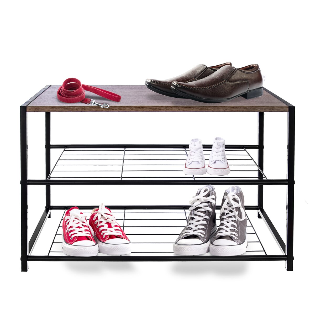 Do chodby, na chalupu alebo chatu využijete kovový botník s dvoma drôtenými poschodiami a pevnou odkladacou plochou z drevotriesky. Obuv, či už čistá alebo zašpinená bude uložená na jednom mieste, na hornú dosku môžete položiť kabelku aj batoh. Vďaka svojim rozmerom 63x30x43 cm sa zmestí aj do menších priestorov.