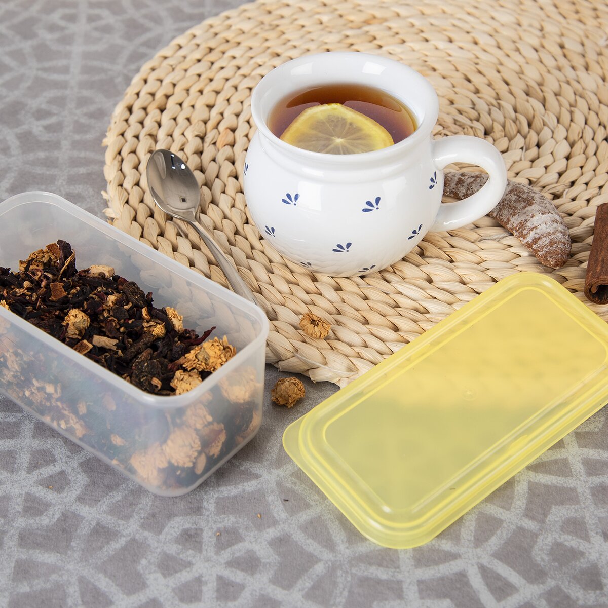 Má objem 350 ml a farebné plastové viečko. Poslúži aj ako dóza na uloženie menších predmetov, korálok, gombíkov, spojovacieho materiálu v dielni aj kreatívnych potrieb v pracovni.