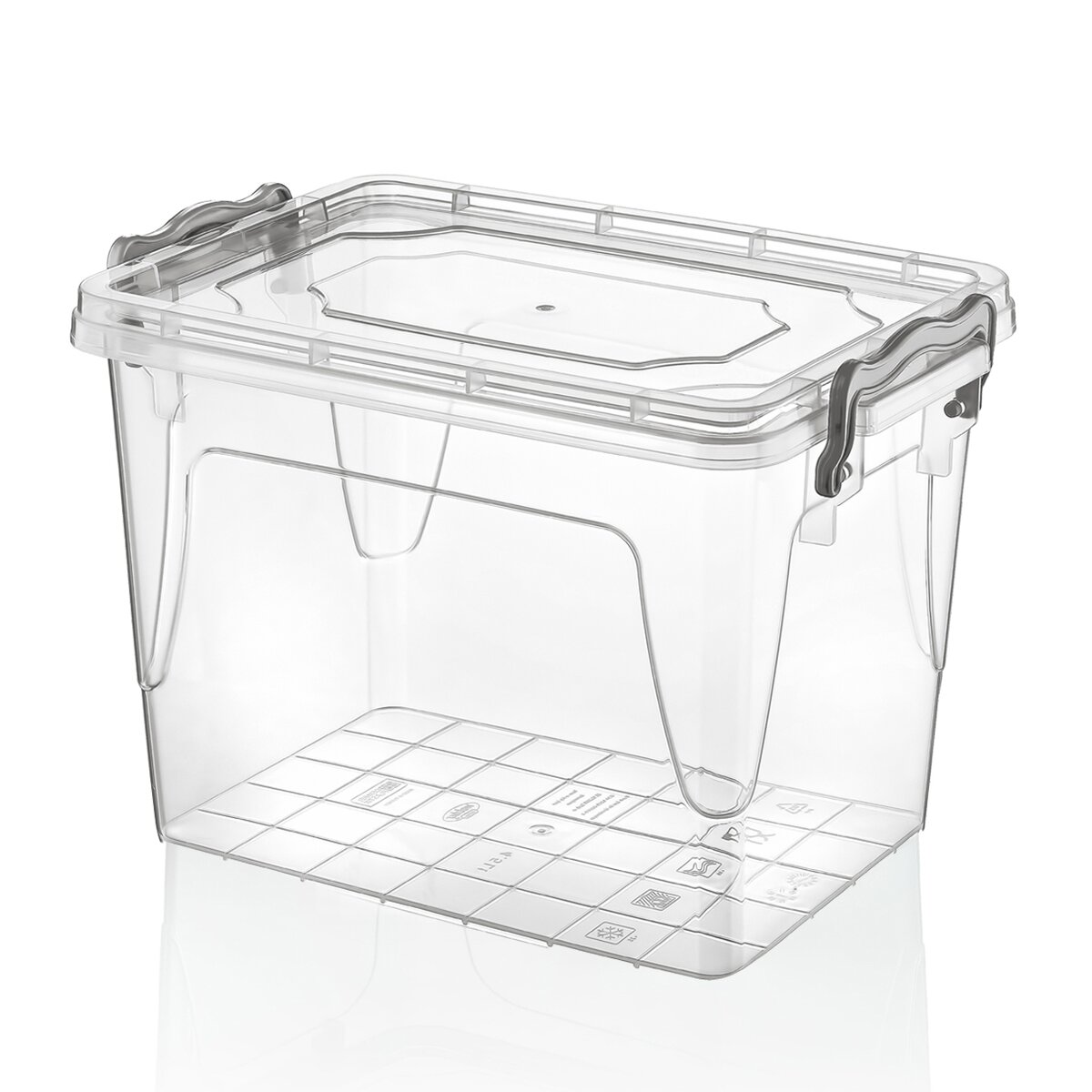 Kód produktu 126038Vysoký priehľadný úložný box s objemom 13 l s viečkom na dva pevné klipy. Je z pevného plastu a má tvar obdĺžnika.