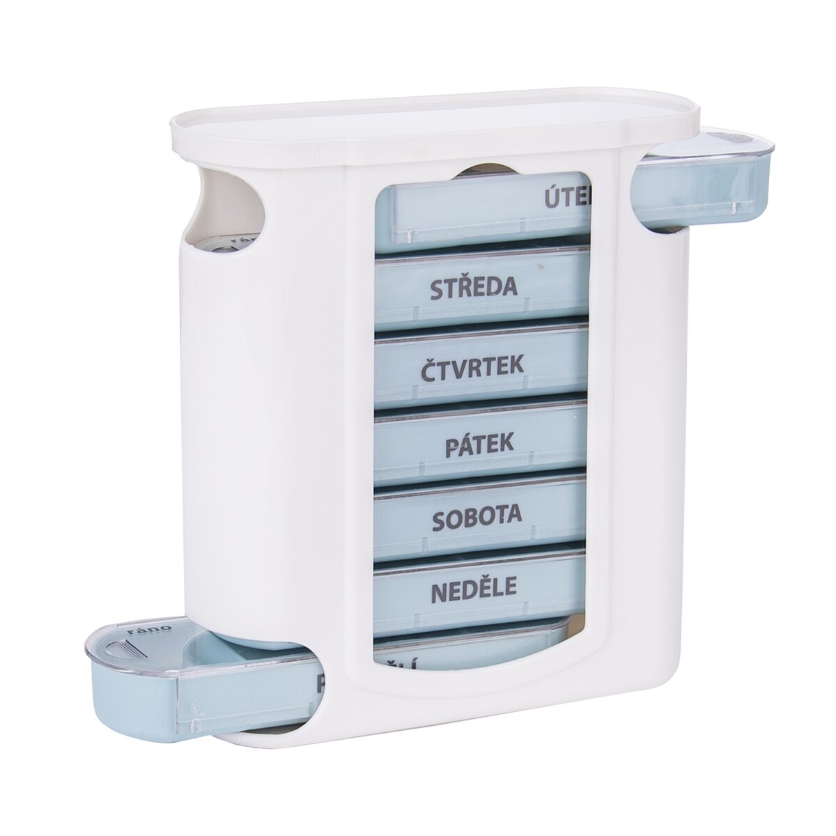 Můžete si pripraviť týždeň predpísanú dávku liekov na celý týždeň. Jednotlivé poschodia majú označení podľa dní v týdnu a mají vlastně zatváracie sviečku. Potrebnú priehradku si tak můžete vzít kamkoľvek so sebou a nebát se toho, že léky vytratíte. Aktuální den je vždy nahoře. Keď dané poschodie vyprázdnite, vsuňte ho dole boxu, nechť máte připraveny na zítra.