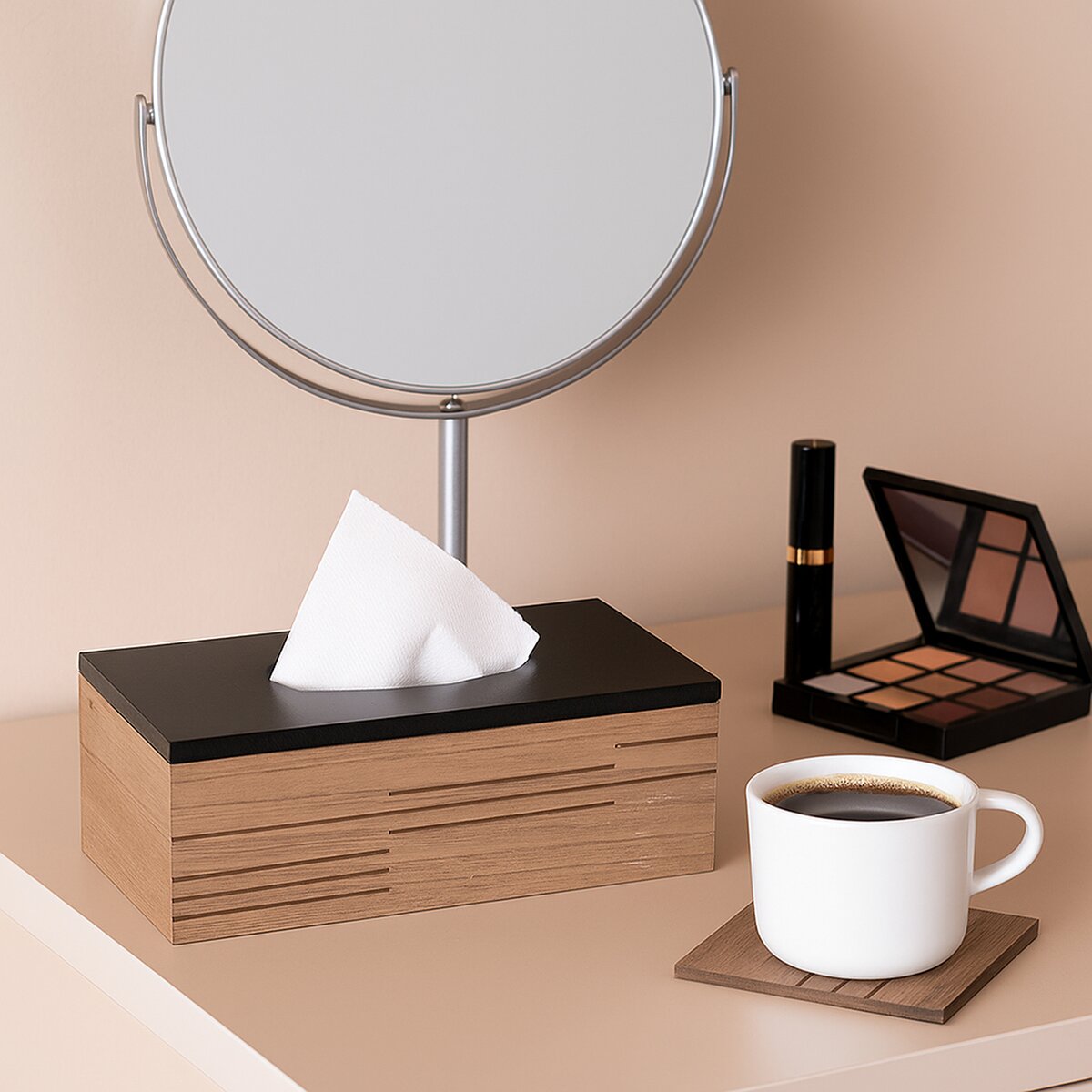 Bude zaujímavým prvkom na jedálenskom stole, konferenčnom stolíku alebo pri posteli vždy, keď budete vreckovku potrebovať. V spodnej časti je opatrený protišmykovými silikónovými podložkami.