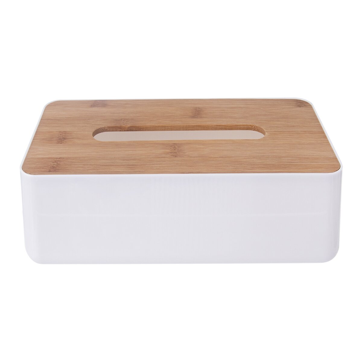Kód produktu 127529Plastový box s viečkom z bambusu na uloženie krabičky s papierovými vreckovkami.