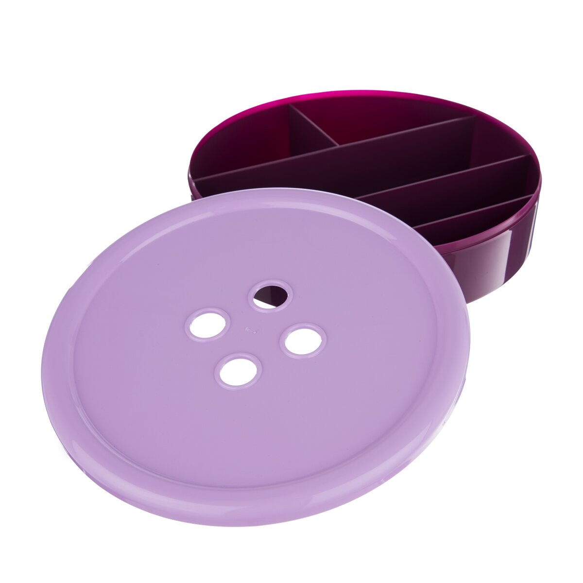 Box na šitie pomôže uložiť do jednotlivých priehradiek základné šijacie potreby. Materiál: plast. Rozmery: pr. 24 cm, v. 6 cm.