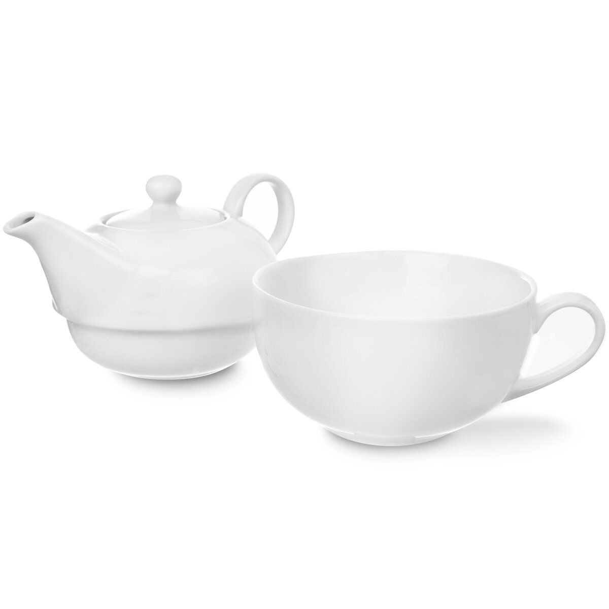 Jednoduchý dizajn a praktické využitie. To zaručuje táto krásna biela kanvička s vekom, ku ktorej patrí aj biely hrnček s objemom 380 ml. Sada je vyrobená z porcelánu, vďaka čomu pripravený čaj v kanvičke tak rýchlo nevychladne. Navyše kanvička pekne zapadne do hrany hrnčeka. Je vhodná do umývačky riadu aj mikrovlnnej rúry.