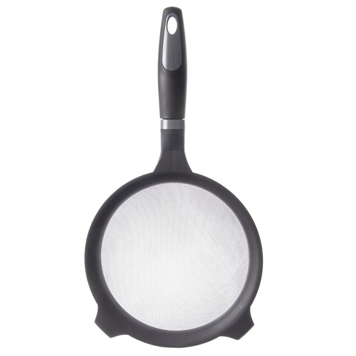 Kód produktu 124488Tmavé plastové cedidlo s priemerom 19 cm má jemné sito, príjemne zaoblenú rukoväť a praktické úchyty, ktoré ho udržia aj na hrane hrnca, misy.