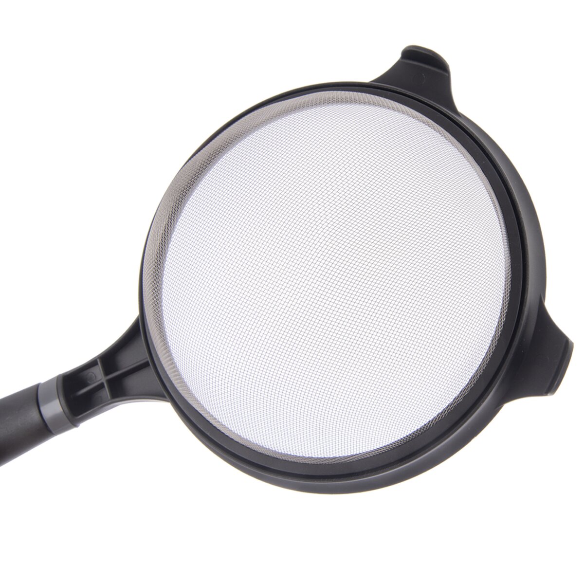 Výhodou je stredne jemné nerezové cedidlo a dva praktické úchyty, ktoré umožňujú jeho zachytenie za okraj nádoby. Na konci rukoväte nájdete očko na jeho zavesenie.
