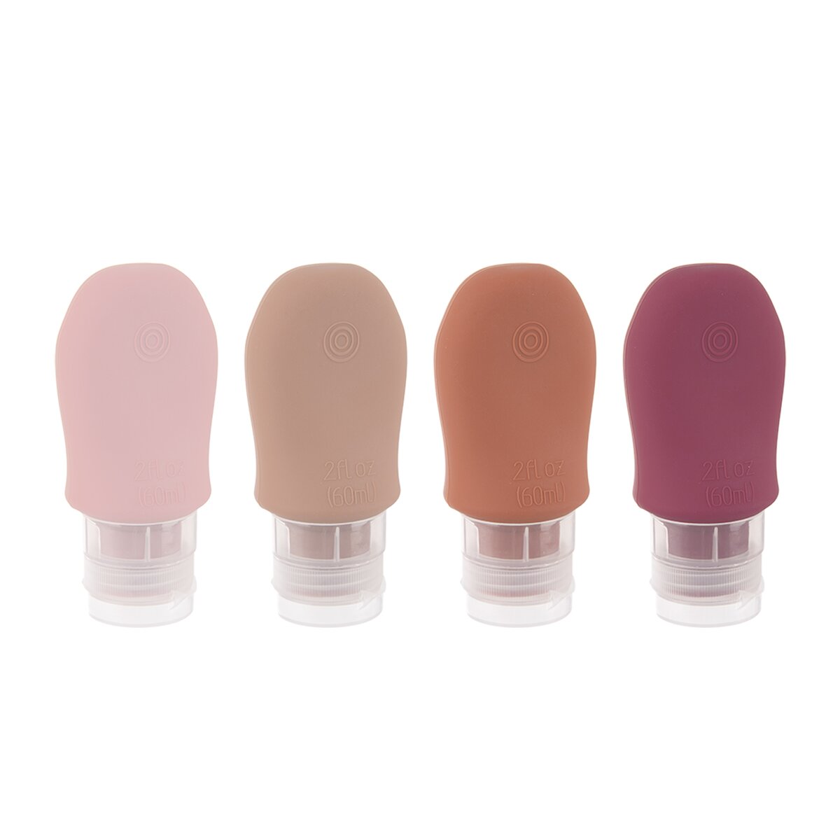 Kód produktu 851326Šikovná a priestorovo úsporná sada štyroch cestovných fľaštičiek s označeným objemom 60 ml je ideálnym riešením na prenášanie kozmetických prípravkov, ako sú šampóny, sprchové gély, tekuté mydlá, krémy a ďalšie. Vďaka kompaktnej veľkosti šetrí miesto v batožine a pritom poskytuje dostatok objemu pre bežné potreby na cestách. Fľaštičky sú vyrobené z materiálu, ktorý umožňuje ľahké dávkovanie obsahu, a široké hrdlo uľahčuje ich plnenie aj čistenie. Ďalšou vychytávkou je prísavka na umiestnenie v sprche. Objem je prakticky vyznačený na fľaštičke. Fľaštičky je možné používať opakovane, čo je nielen ekonomické, ale aj šetrné k životnému prostrediu. Priehľadné puzdro je na plastový zips, takže ho veľmi ľahko otvoríte a opäť uzavrite. Materiál: silikón, plast PP (viečko fľaštičky), plast PVC (puzdro). Rozmery: 18x4x14 cm, fľaštička o. 60 ml, pr. 4 cm, v. 11 cm. Pre plnenie fľaštičky odskrutkujte hornú časť plastového viečka späť (dolná časť viečka zostáva nasadená na fľaštičke), fľaštičku naplňte a hornú časť viečka naskrutkujte späť. Pri plnení/uzatváraní je nutné vždy skontrolovať, či je silikónový diel fľaštičky dobre pripevnený k dolnej časti plastového viečka (aby bola fľaštička na dolný diel viečka správne pripevnená a tesnila).