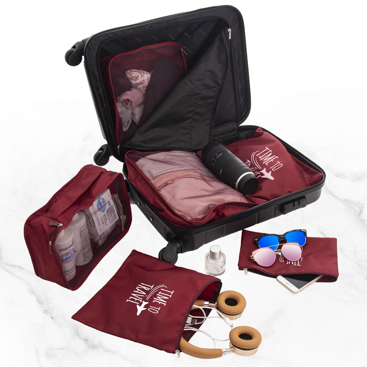Či už ste aktívny cestovatelia, alebo len máte radi vo svojich veciach poriadok, tieto cestovný organizéry si obľúbite. Vďaka širokej škále rozmerov sa do nich zmestí veľa vecí od malých drobností až po oblečenie alebo kozmetiku. Šesť rôznych veľkostí organizérov, ktoré sú uzatvárateľné na zips. Tri sú opatrené sieťkou na prehľad o obsahu s uchom. Vďaka organizérom si kufor usporiadate a budete ho mať prehľadne zrovnaný. Materiál: polyester, plast, kov, koženka. Rozmery: 40x30x13 cm, 30x28x13 cm, 30x21x12 cm, 35x28 cm, 27x26 cm, 26x17 cm.