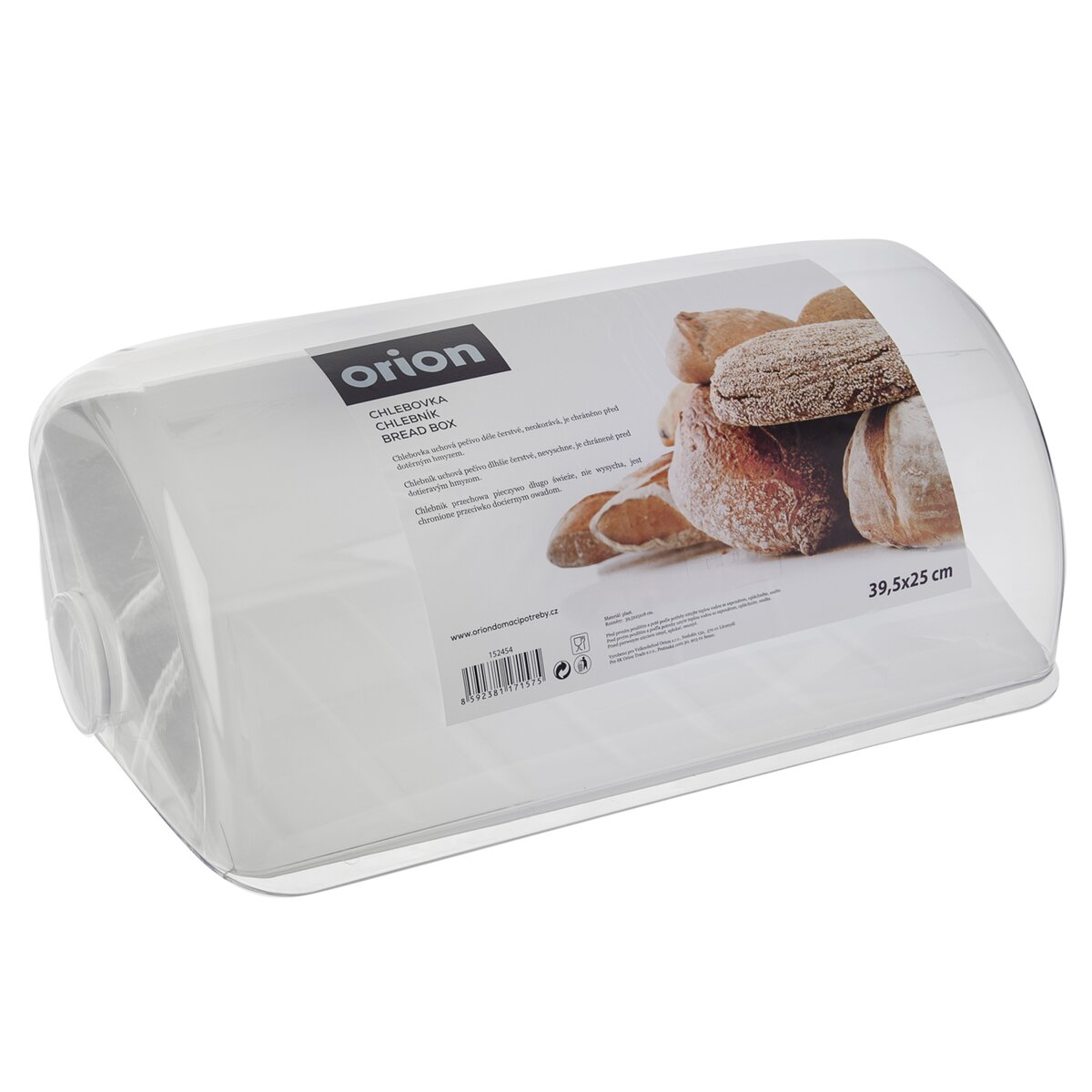Kód produktu 152454Biely plastový chlebník GRAHAM s rozmermi 39,5×26,5×18 cm s vyklápacím transparentným vekom, slúžiaci na uloženie pečiva.