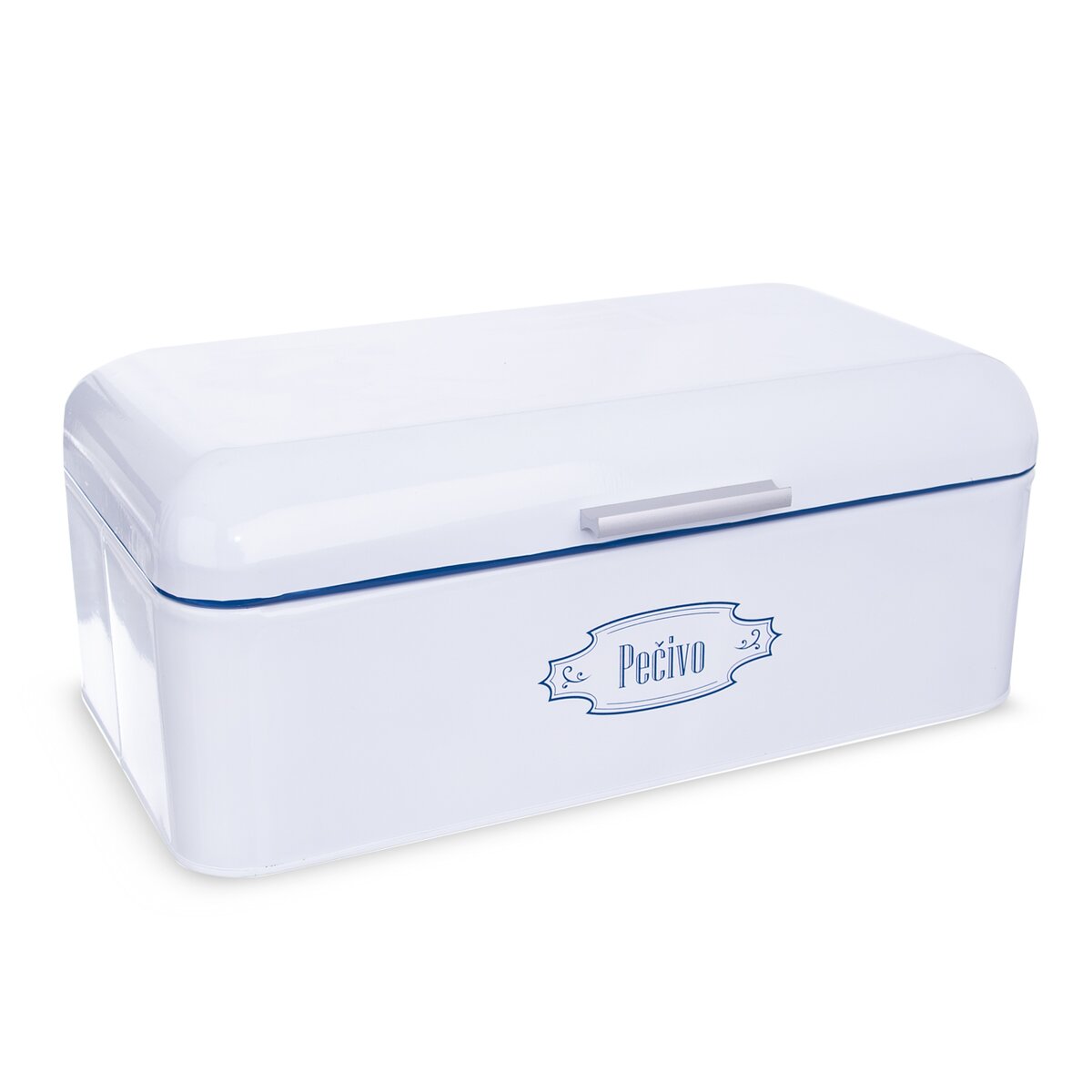 Chlebník hranatý s viečkom na uloženie pečiva... Materiál: plech. Rozmery: 42x23x17 cm.
