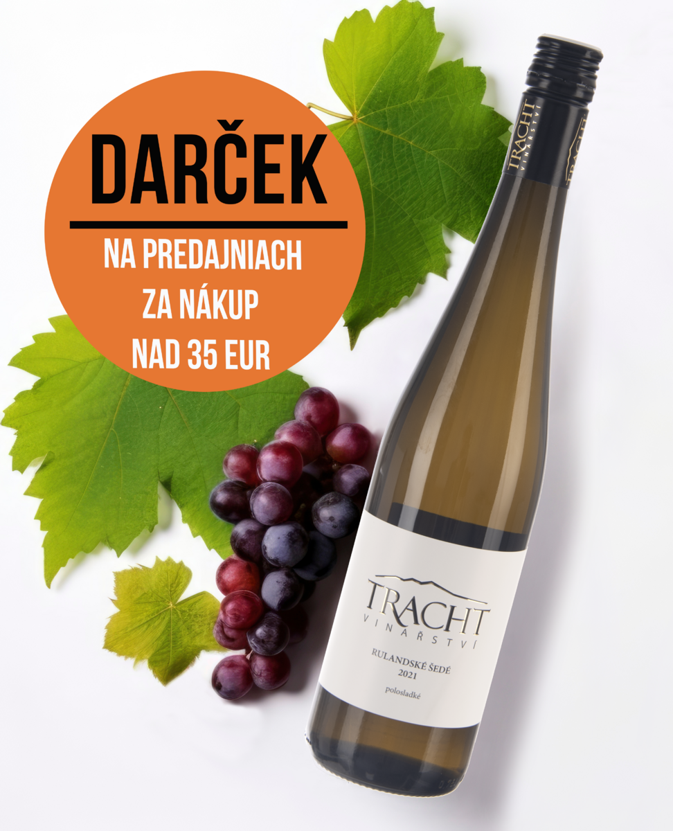 Vychutnajte si Rulandské šedé - neskorý zber alebo Rulandské biele v limitovanej edícii z rodinného vinárstva TRACHT. Akcia platí do vyčerpania zásob, ponuka darčeka sa vzťahuje na nakupujúce osoby staršie ako 18 rokov.