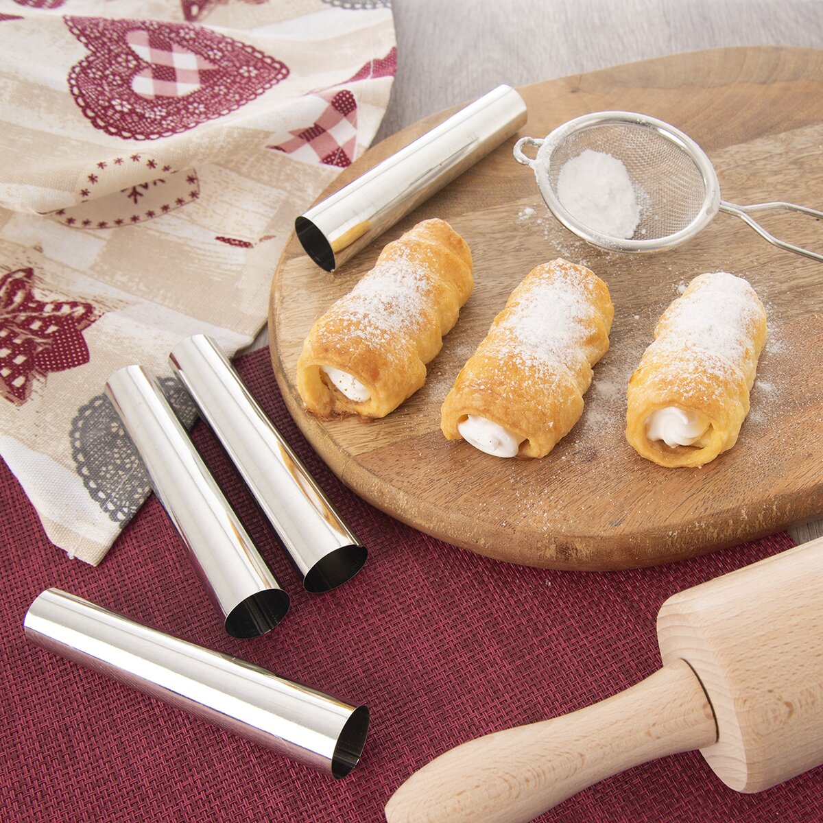 Kód produktu 122404Kovové trubičky kónického tvaru v sade 10 kusov pomôžu pri pečení dokonalých krehkých šamrólov ako z cukrárne. Priemer trubičiek je 1,9 cm/2,3 cm.
