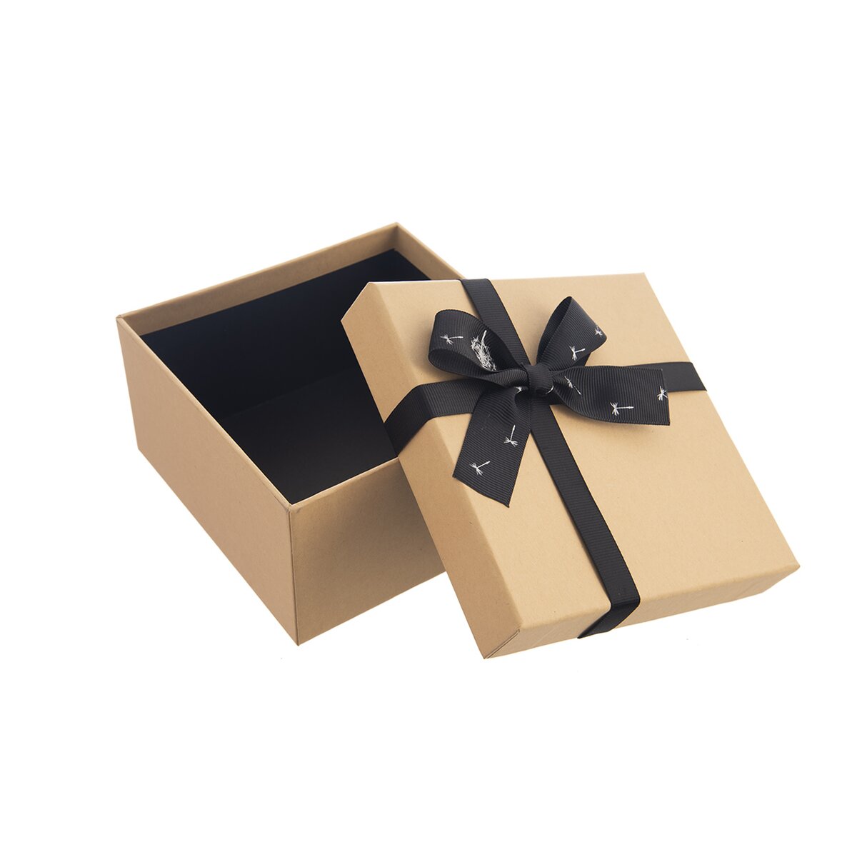Mäkké a nepravidelné darčeky, originálne darčeky domácej výroby, kozmetiku aj peknú šatku jednoducho uložíte do papierovej krabice. Táto hnedá krabica v rozmere 15,5x15,5x8 cm je vyrobená z pevného kraftového papiera a zdobí ju na veku čierna stuha z polyesteru.