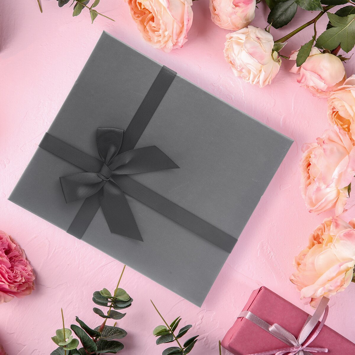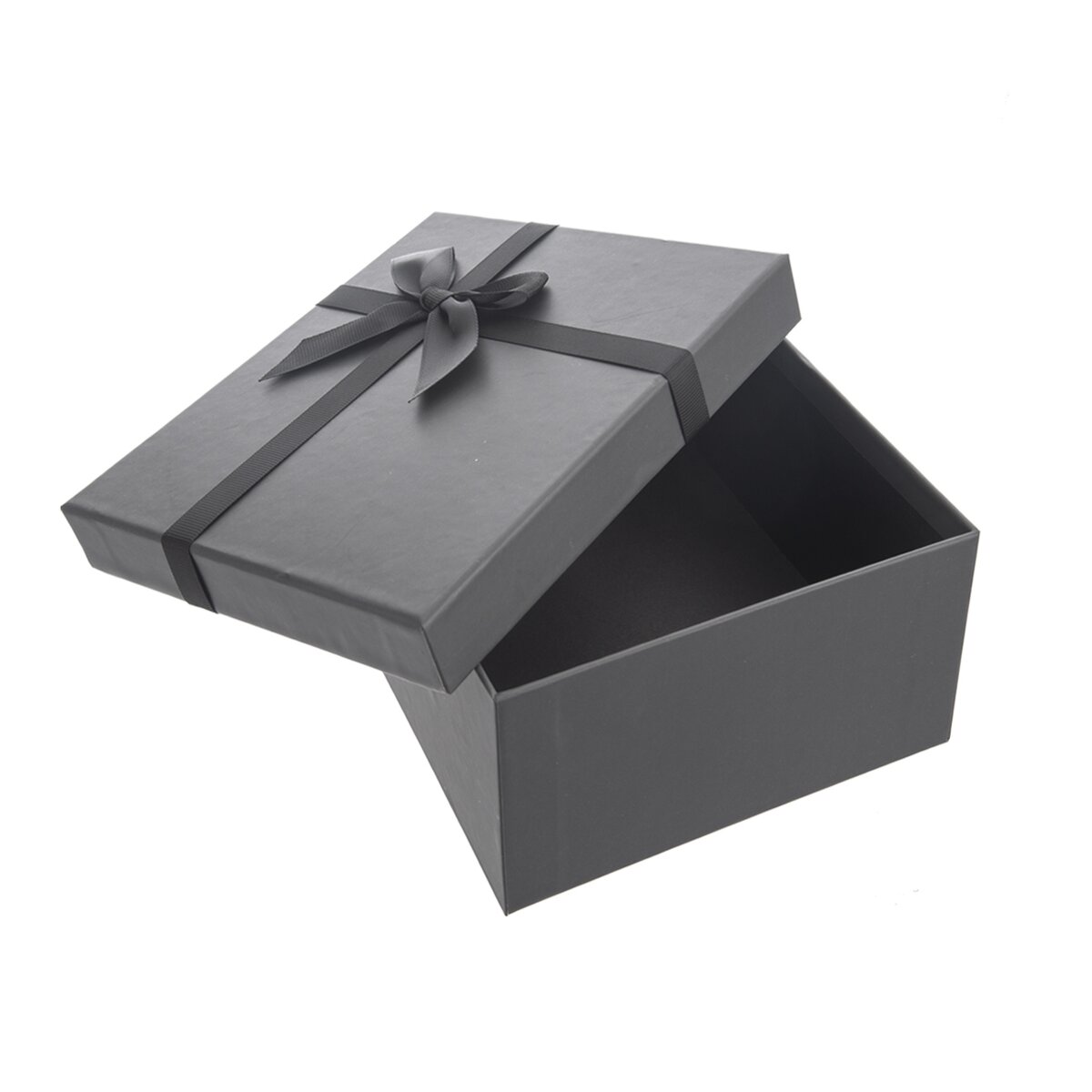 Kód produktu 822739Matná šedá krabica z kraftového papiera má na veku elegantnú čiernu stuhu a je určená na pohodlné balenie darčekov.