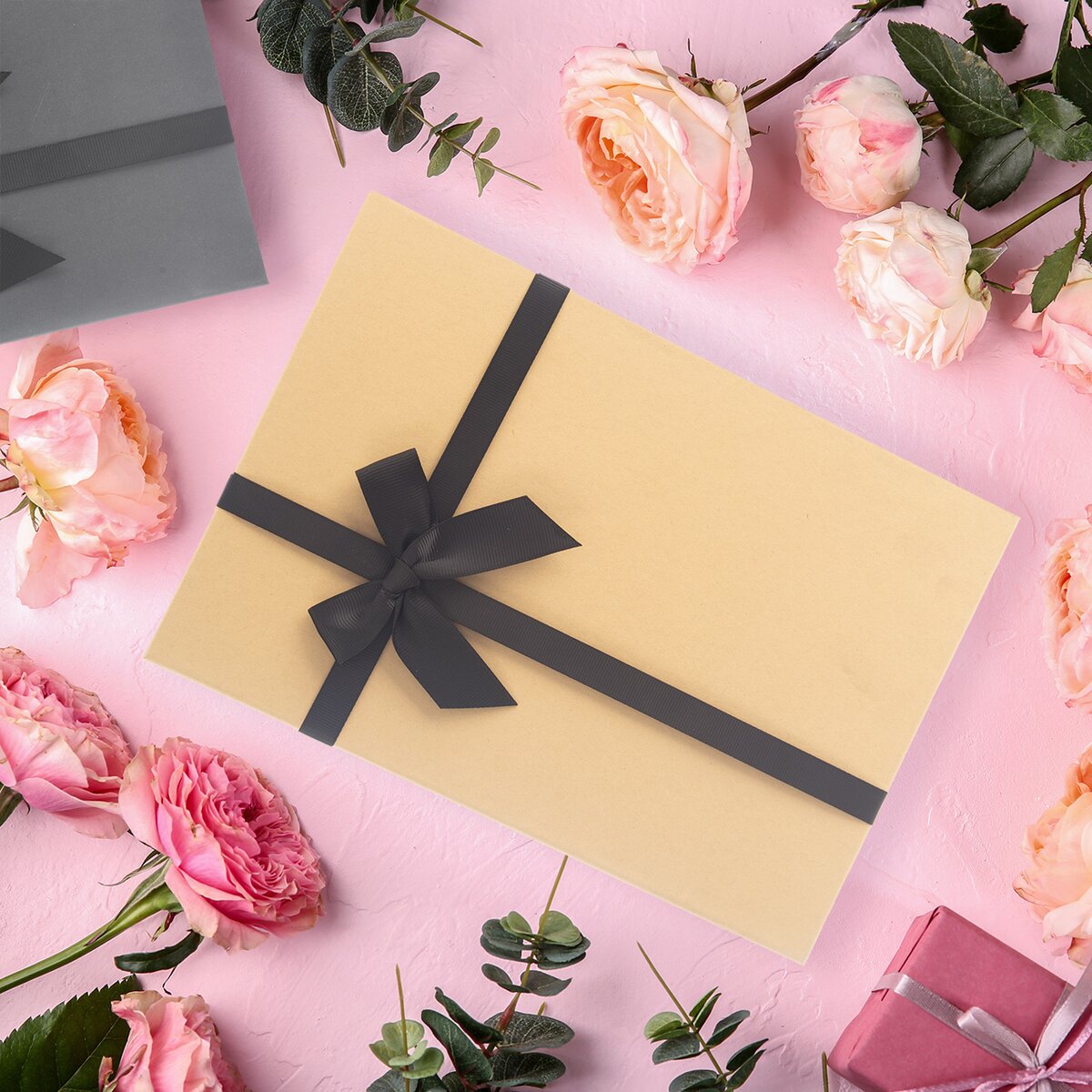 Kód produktu 822736Matná svetlá krabica z kraftového papiera má na veku elegantnú čiernu stuhu a je určená na pohodlné balenie darčekov.