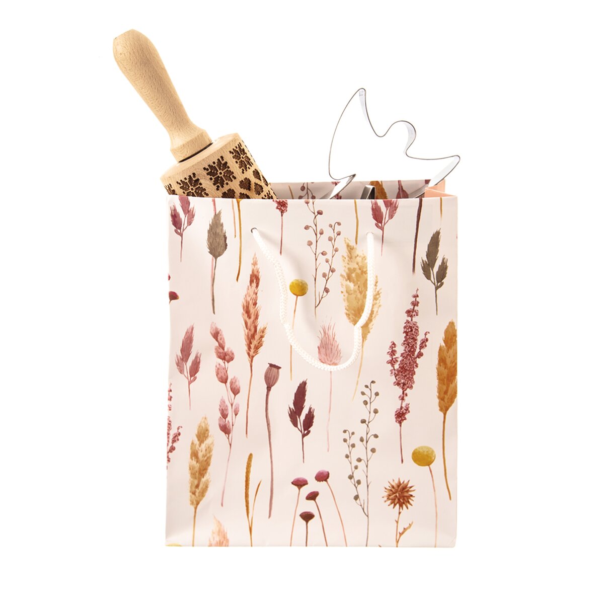 Kód produktu 822719Papierová darčeková taška s motívom kvetín v rozmere 18x8x23 cm.