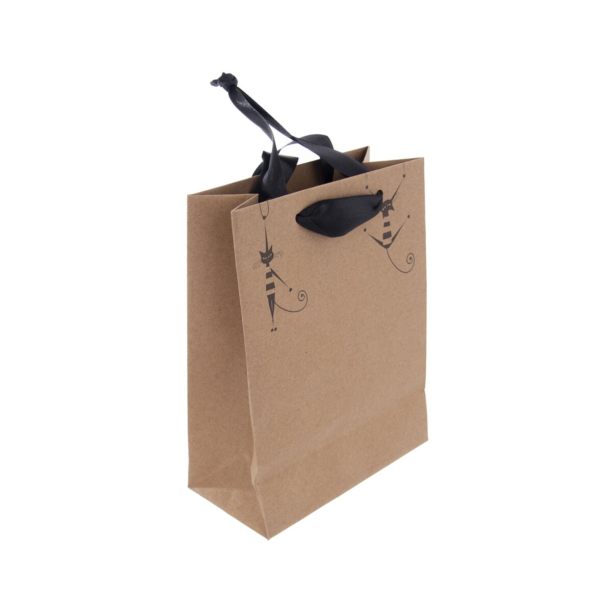 Darčeková taška, ktorá poteší každého milovníka mačiek. Ak ste už kúpili čokoľvek, vložte vybranú radosť do tejto menšej papierovej tašky. Rozkošná potlač týchto hravých štvornohých maznáčikov dopĺňa elegantná čierna mašľa.