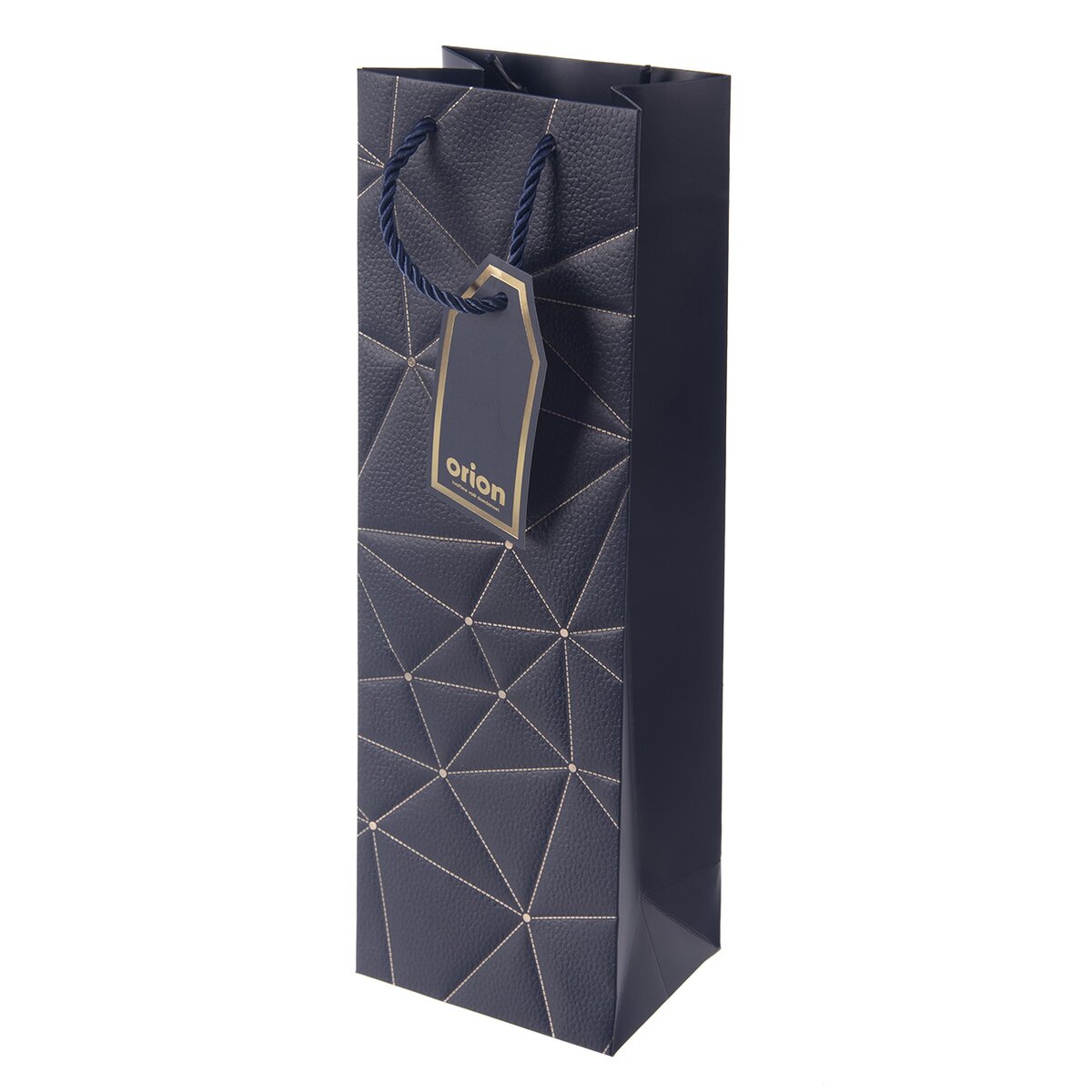 Kód produktu 834661Papierová darčeková taška na víno s rozmermi 12x9x36 cm v luxusnom modrom prevedení.
