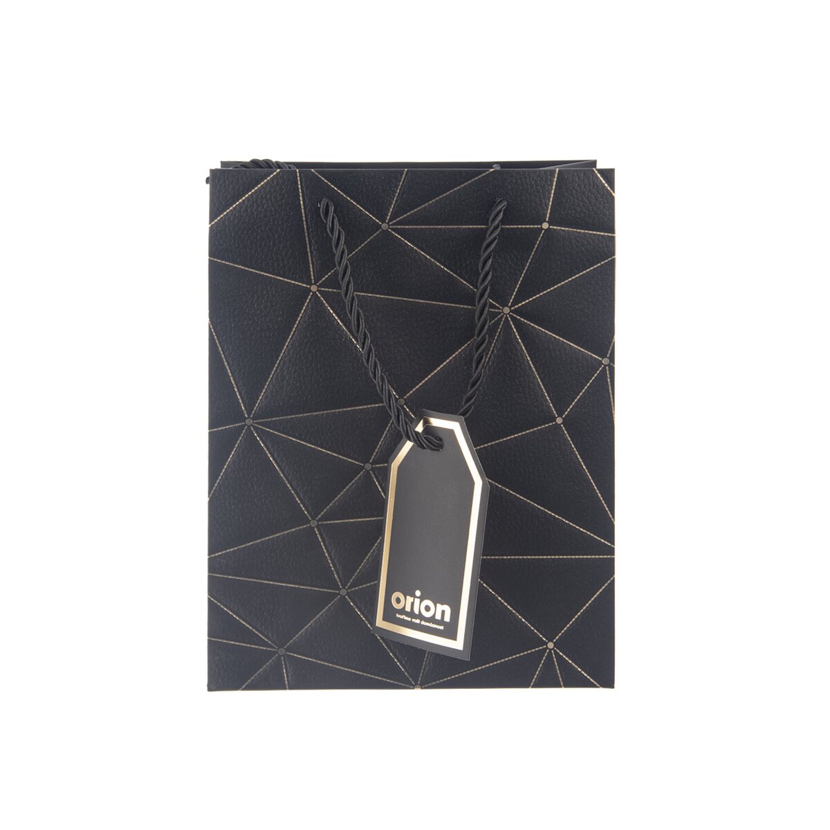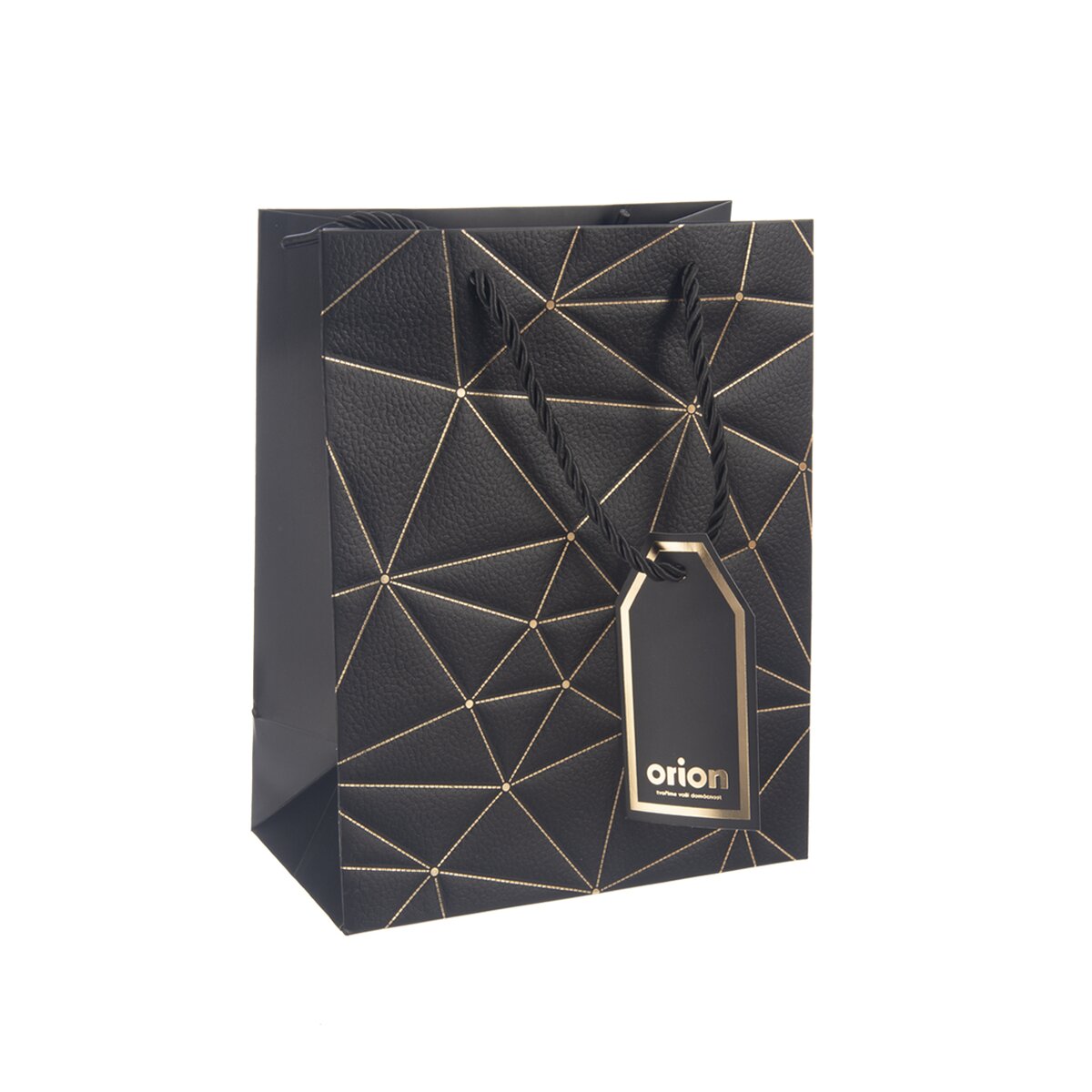 Na prednej strane je zdobená zlatými linkami a doplnená menovkou, kam je možné napísať venovanie alebo meno obdarovaného. S jej prenášaním pomôžu držadlá z krúteného polyesterového povrázku.