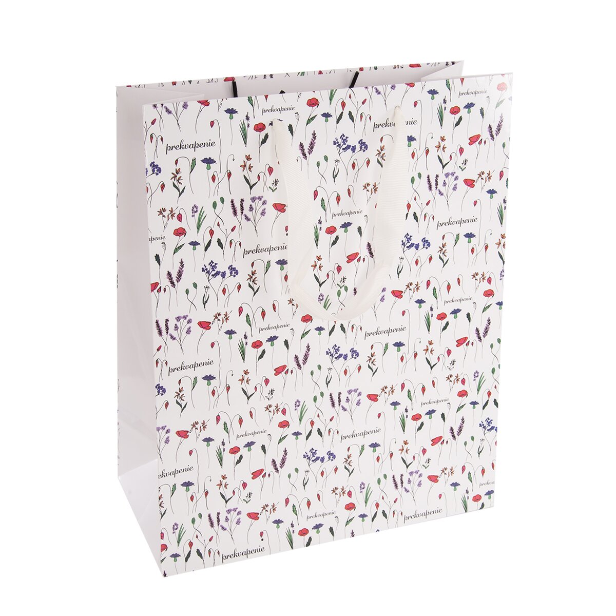 Kód produktu 822773Papierová darčeková taška PREKVAPENIE s rozmermi 26x12x32 cm s originálnou potlačou je vhodná na uloženie najrôznejších darčekov.