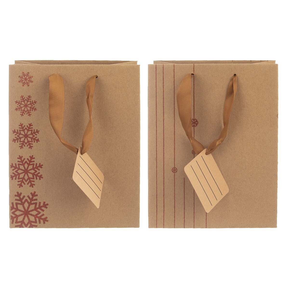 Kód produktu 822682Papierová darčeková taška s rozmermi 18x23 cm s červenou potlačou snehových vločiek.
