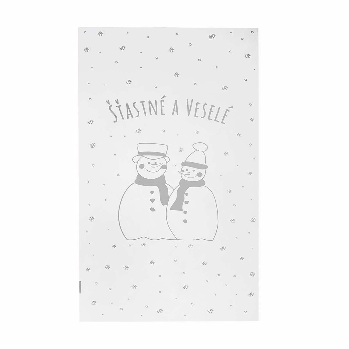 Toto originálne vrecko je priehľadné s decentnou bielou potlačou z prednej strany. Dizajn snehuliaka, poletujúcich vločiek a nápis "Šťastné a veselé" vznikol v dielni našich dizajnérov.