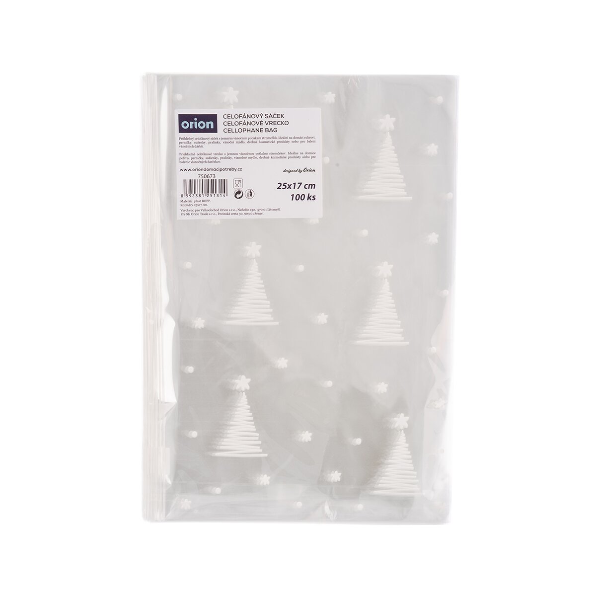 Toto originálne vrecko je priehľadné s decentnou bielou potlačou z prednej strany. Dizajn s vianočnými stromčekmi a snehovými vločkami vznikol v dielni našich dizajnérov.