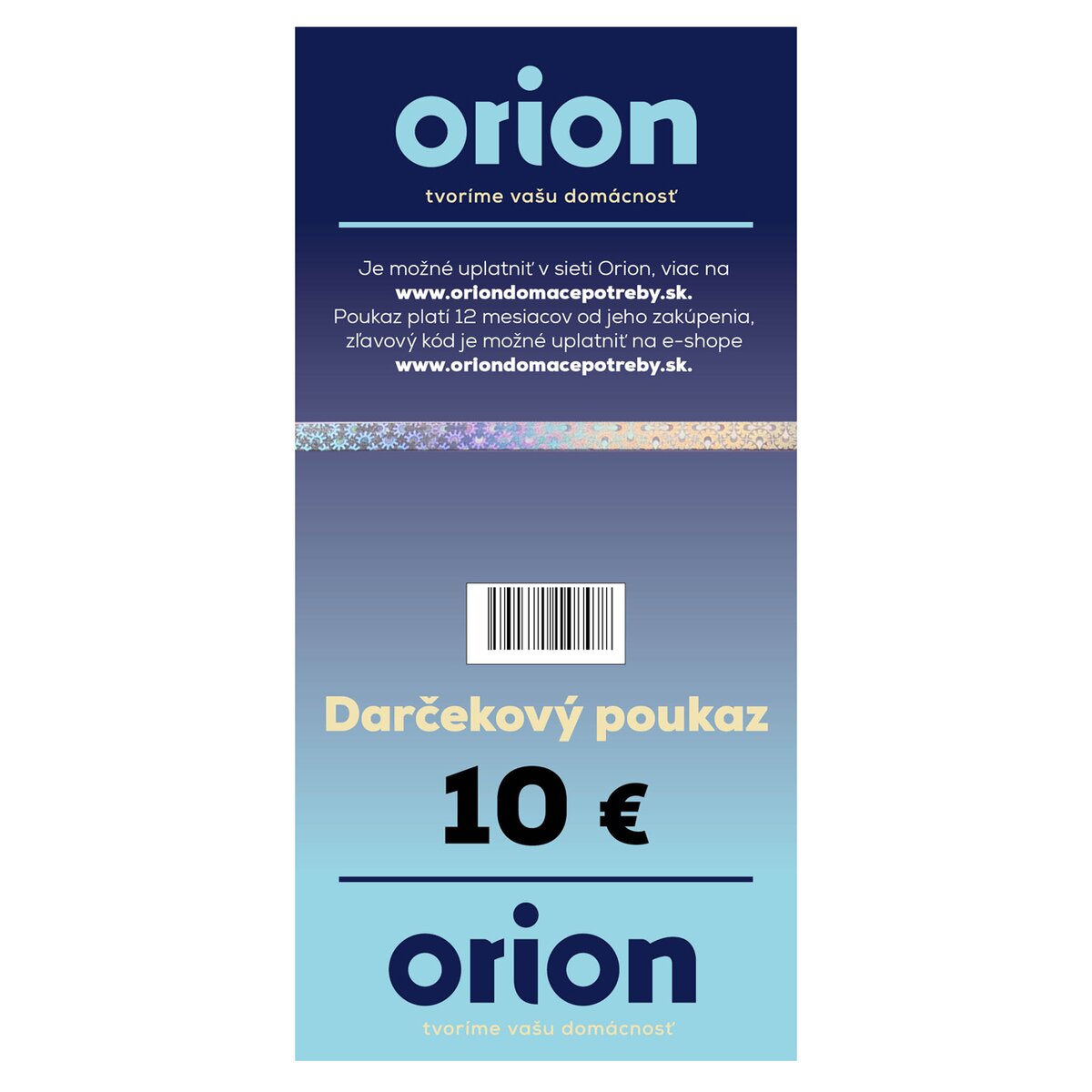 Kód produktu 821764Darčekový poukaz v hodnote 10 EUR možné uplatniť v akejkoľvek slovenskej predajni ORION – tvoríme vašu domácnosť. Poukaz zasielame v tlačenej podobe na doručovaciu adresu.