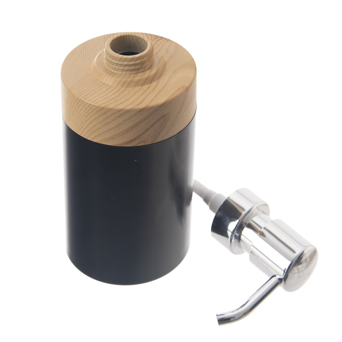 Kód produktu 530790Plastový dávkovač mydla BLACK s objemom 0,38 l, v kombinácii čiernej farby a imitácii dreva, vhodný na dávkovanie tekutého mydla aj saponátu.