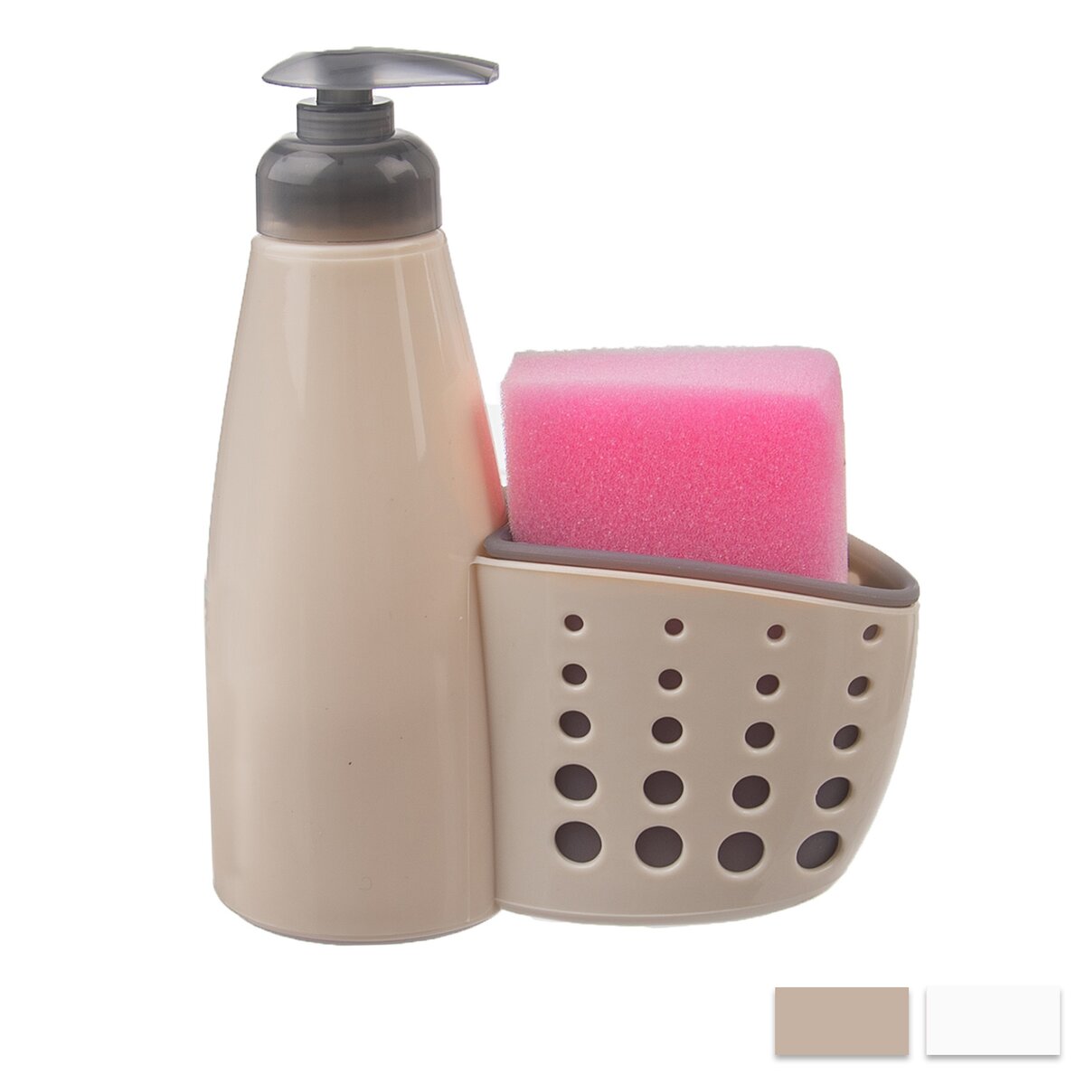 Kód produktu 530758Plastový dávkovač tekutého mydla alebo saponátu s praktickou dózou na špongiu v jednom.