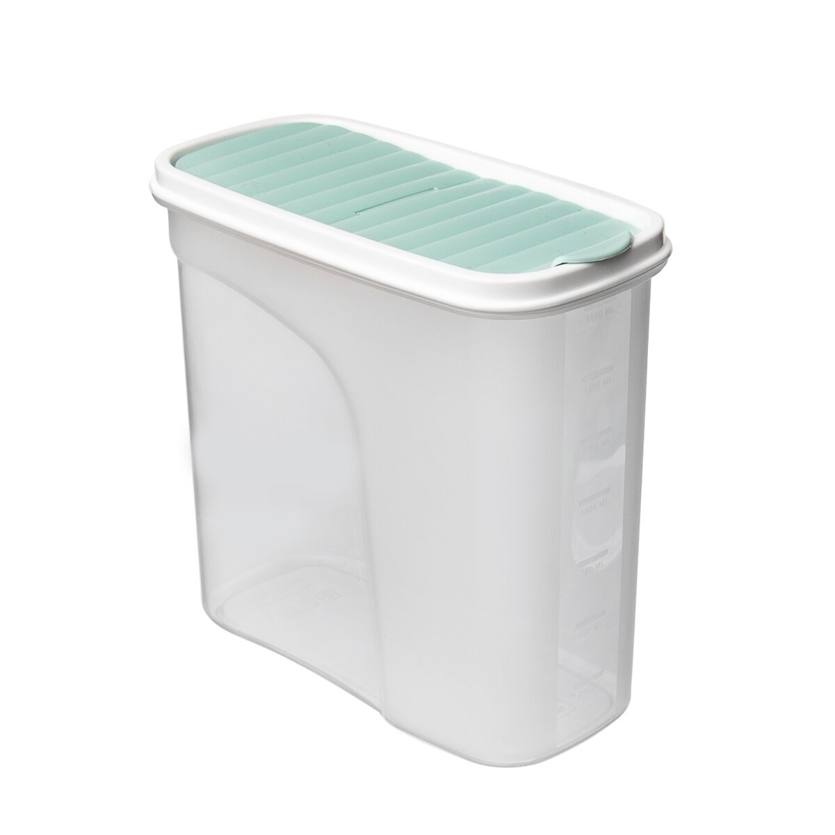 Kód produktu 127141Polopriehľadná dóza BONNY s objemom 1,8 l s praktickým odklápacím viečkom a vyznačenou mernou stupnicou.