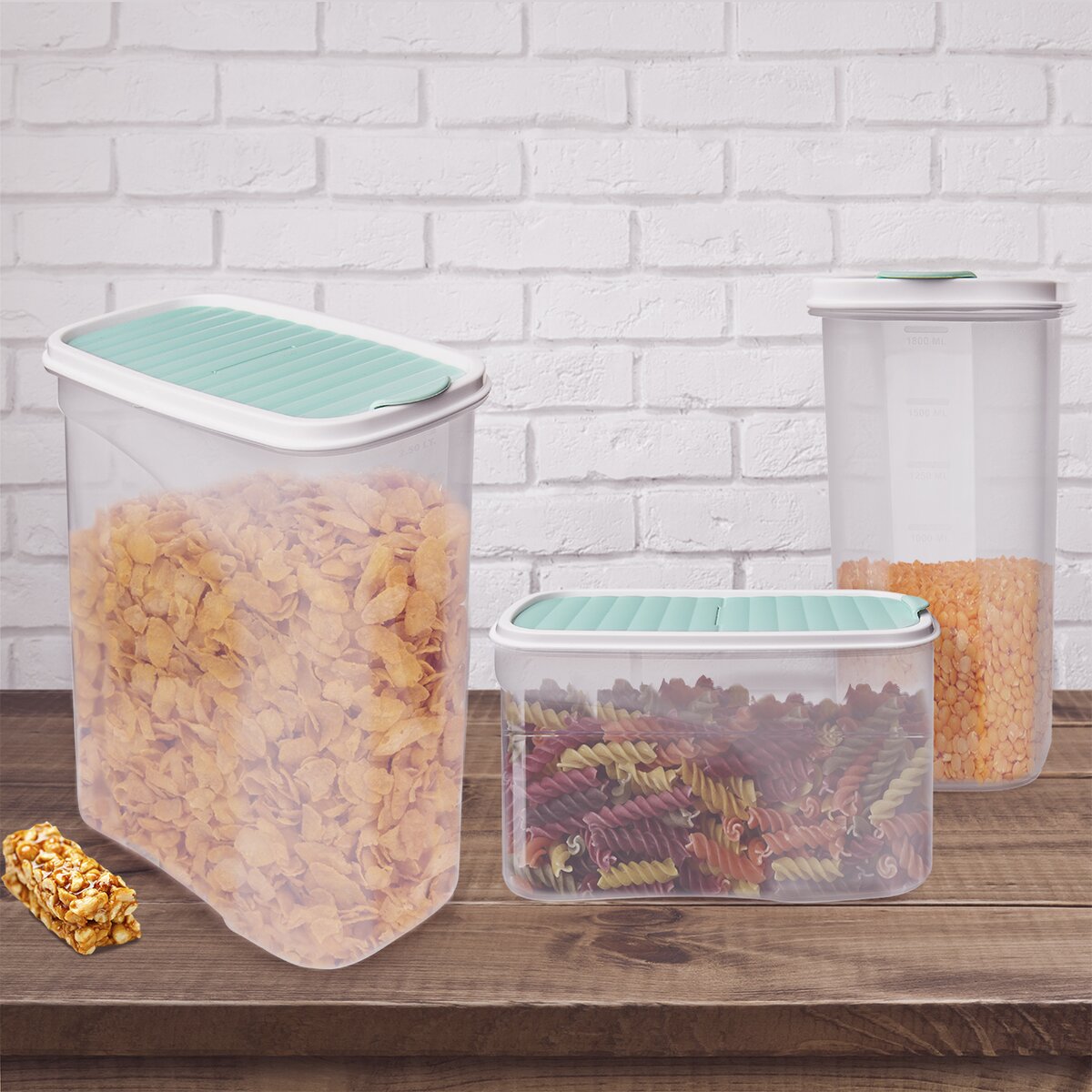 Decentné, praktické a prehľadné ukladanie sypkých surovín, múky, strukovín, cereálií a pod. To zaistí polopriehľadná plastová dóza BONNY (z PP) v objeme 1,8 l, s odklápacím viečkom (PE) v mint farebnom tóne.