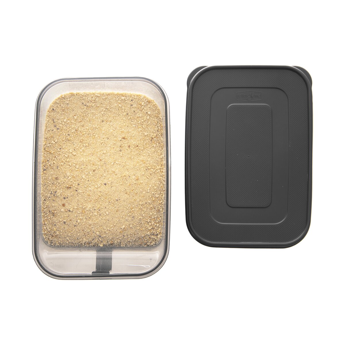 Viečko zabráni rozsypaniu, zvlhnutiu, preberaniu vôní a chutí z ostatných potravín uložených v skrinke, možno ich tiež stohovať na seba. Dóza má síce dymové zafarbenie, ale je dostatočne transparentná, máte tak na prvý pohľad prehľad o obsahu. Odolná teplotám od -25 °C do +95 °C, je možné ju bez viečka použiť aj v mikrovlnnej rúre a umývať v umývačke.