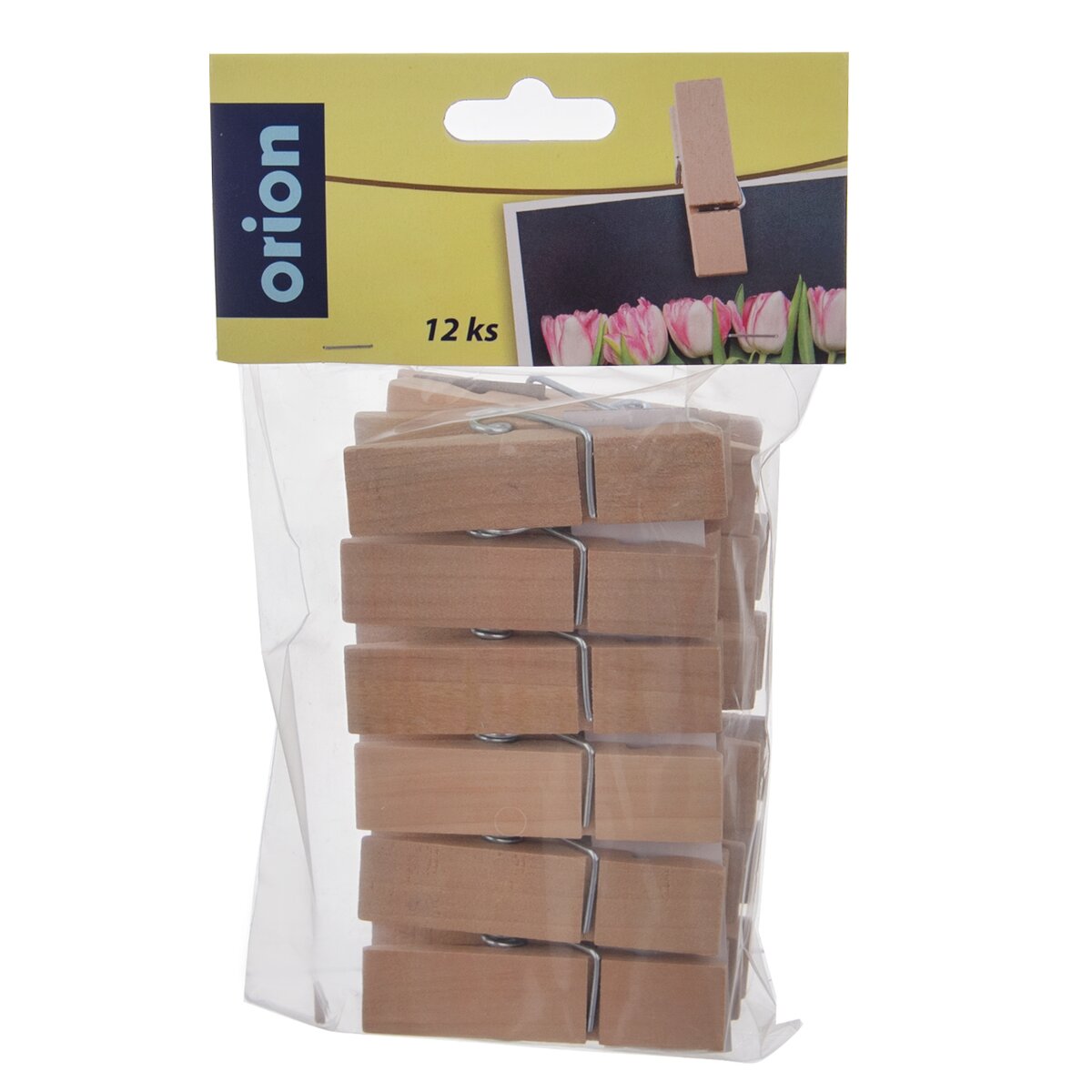Kód produktu 531152Drevené štipce dĺžky 7,2 cm a šírky 1,2 cm v sade po 12 kusoch, určené na uzavretie sáčkov s korením, na upevnenie fotiek, výkresov, odkazov alebo iné kreatívne výtvory.