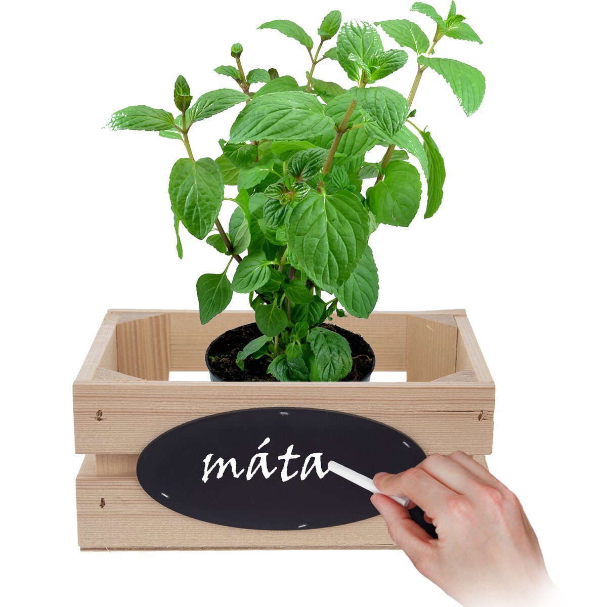 Uprostred má čiernu tabuľku, na ktorú môžete kriedou alebo bielou fixkou napísať názov vložených byliniek, meno oslávenca alebo odkaz.
