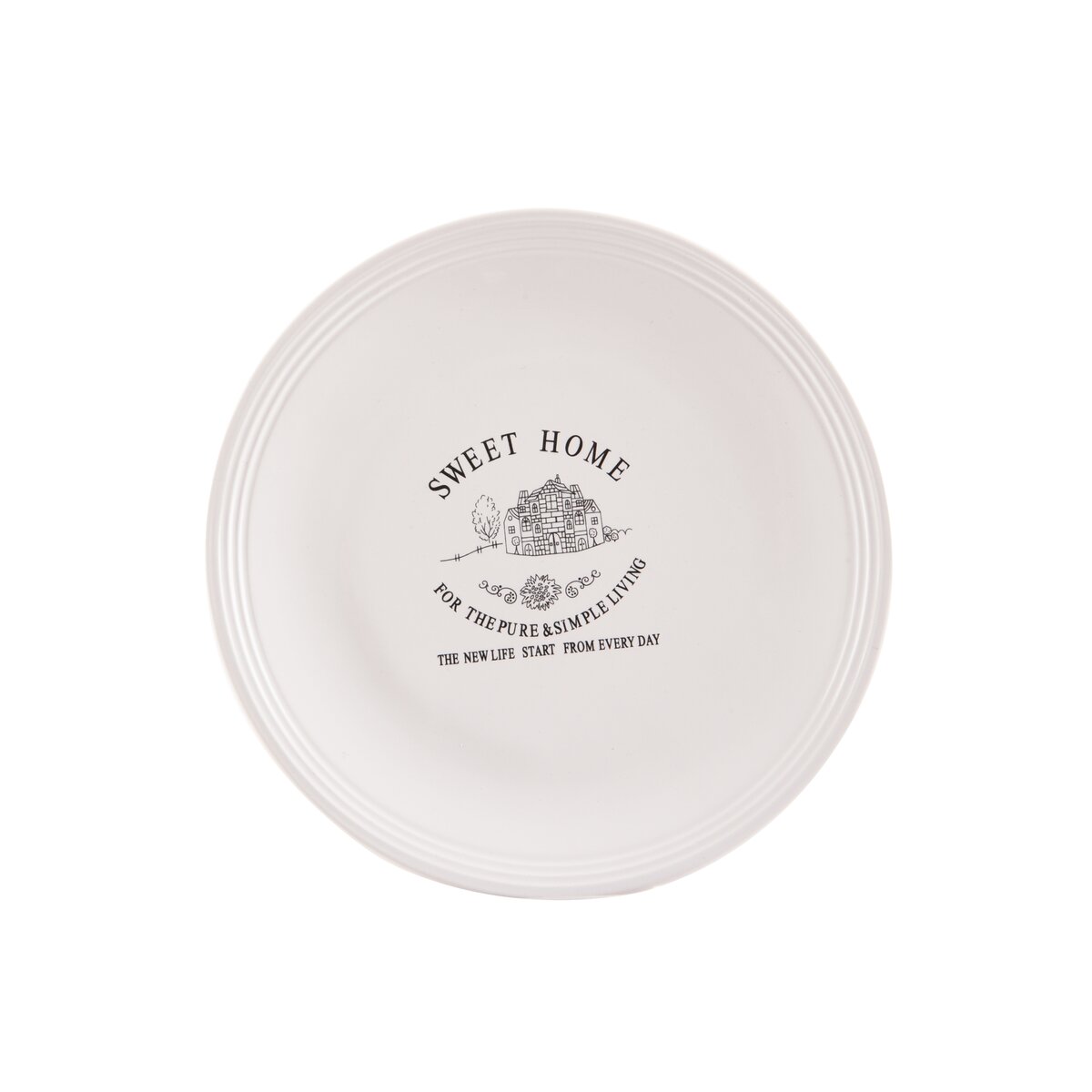 Tanierik dezertný. Materiál: keramika. Dekor SWEET HOME. Rozmery: pr. 17 cm.