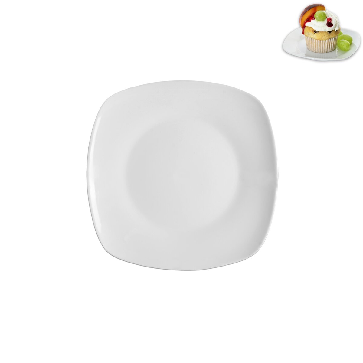 Dezertný tanier na servírovanie zákuskov, chlebíčkov....Materiál: keramika. Biela farba, hranatý tvar.Rozmery: 14,5x 14,5 cm Vhodný do umývačky na riad, ale z dôvodu použitia čistiacich prostriedkov používaných v umývačkách by mohlo dôjsť k rýchlejšiemu opotrebeniu materiálu - nie je dôvodom na reklamáciu.