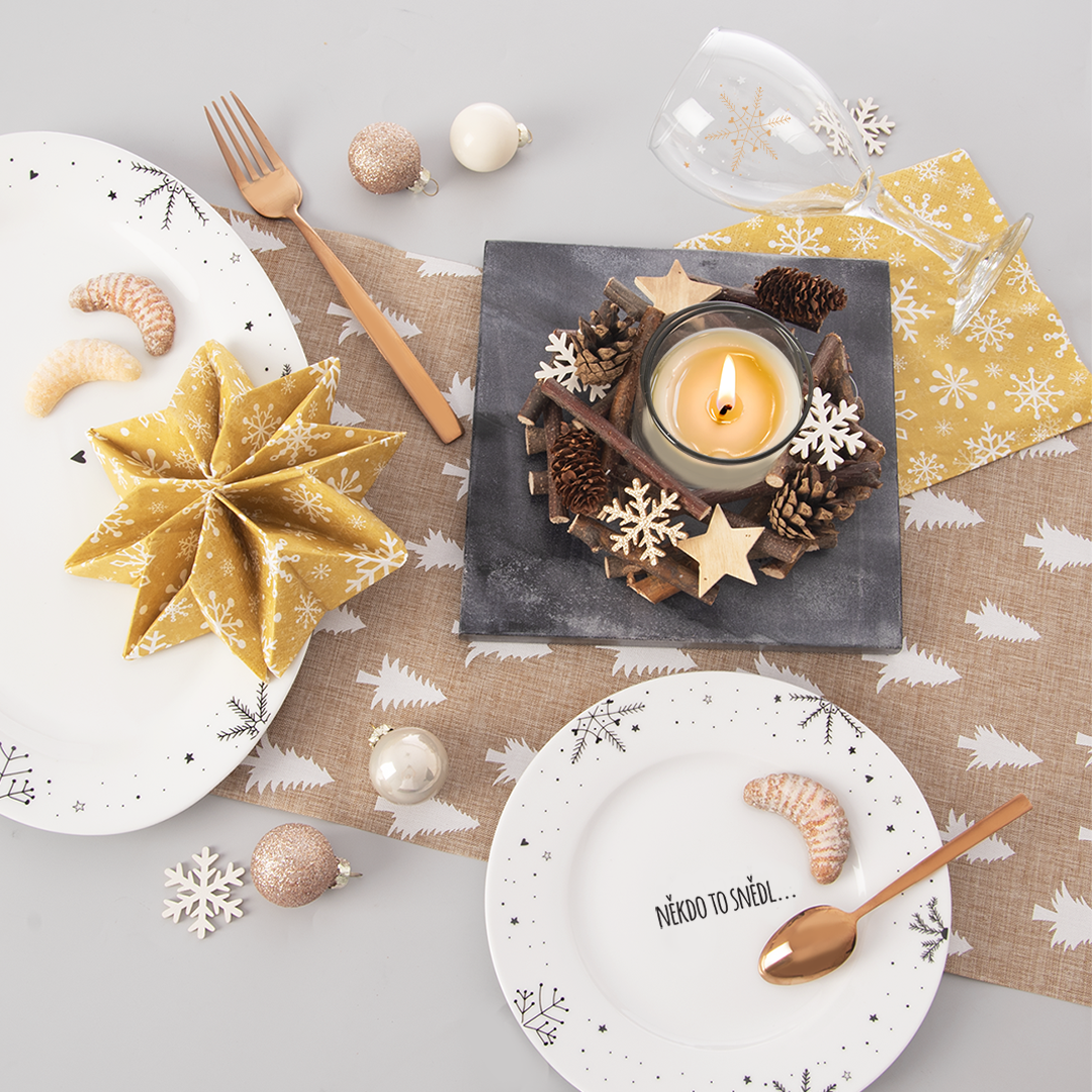 Zaslúžená chvíľka pokoja medzi vianočným zhonom môže byť aj v podobe sladkého múčnika, servírovaného na krásnom dezertnom tanieri. Je po obvode zdobený jemnými vločkami a uprostred, napríklad pod chlebíčkom, tortou alebo zákuskom nájdete vtipný nápis "NIEKTO TO ZJEDOL".