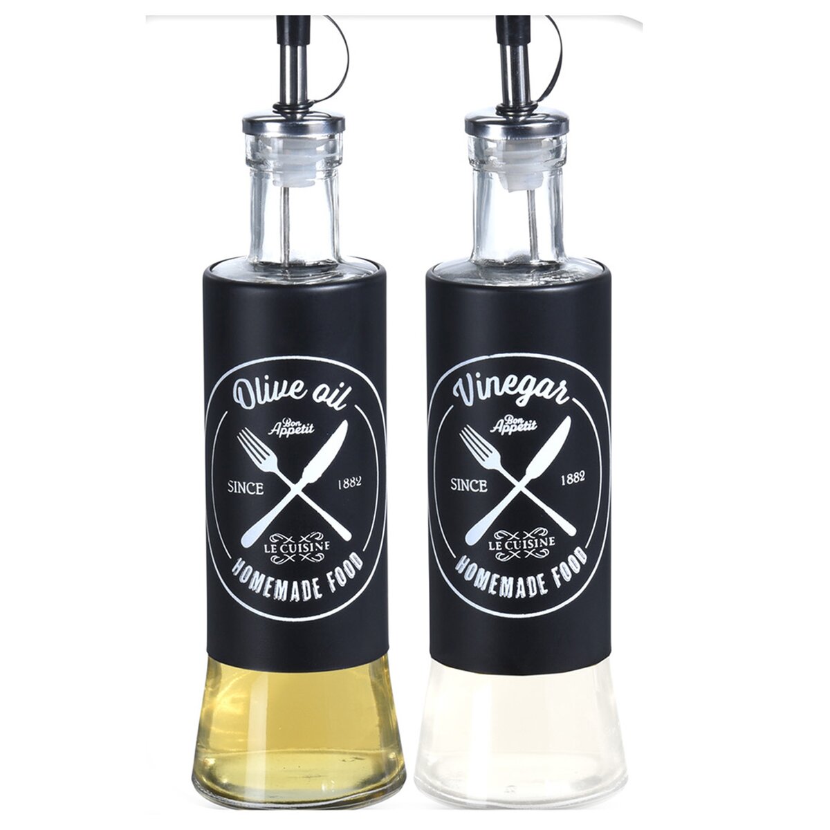 Jej objem je 320 ml a pozornosť upúta predovšetkým jej výrazný, čierno-biely dekor, ktorý vás upozorní na obsah nádoby. Má praktický nerezový dávkovač uľahčujúci nalievanie tekutiny.