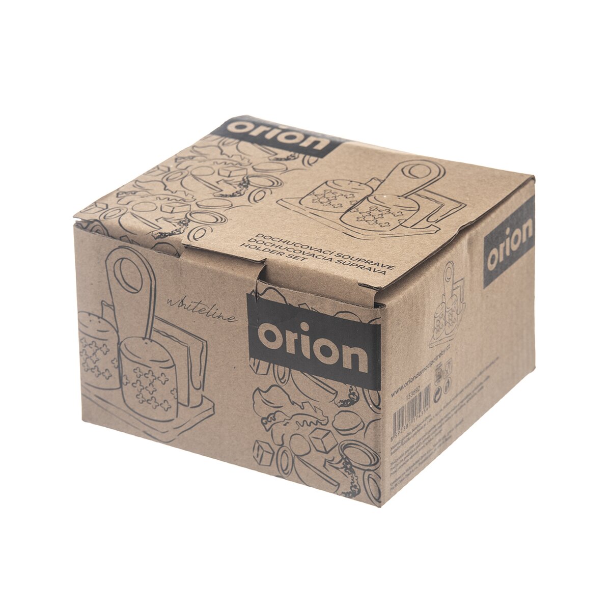 Soľnička a korenička má priemer 5 cm a výšku 6,5 cm, stojan na obrúsky je v rozmere 10,5x4x7 cm, celý set možno vďaka otvoru v rukoväti ľahko preniesť, podať hosťom, ak sa potrebujú pokrmy dochutiť.