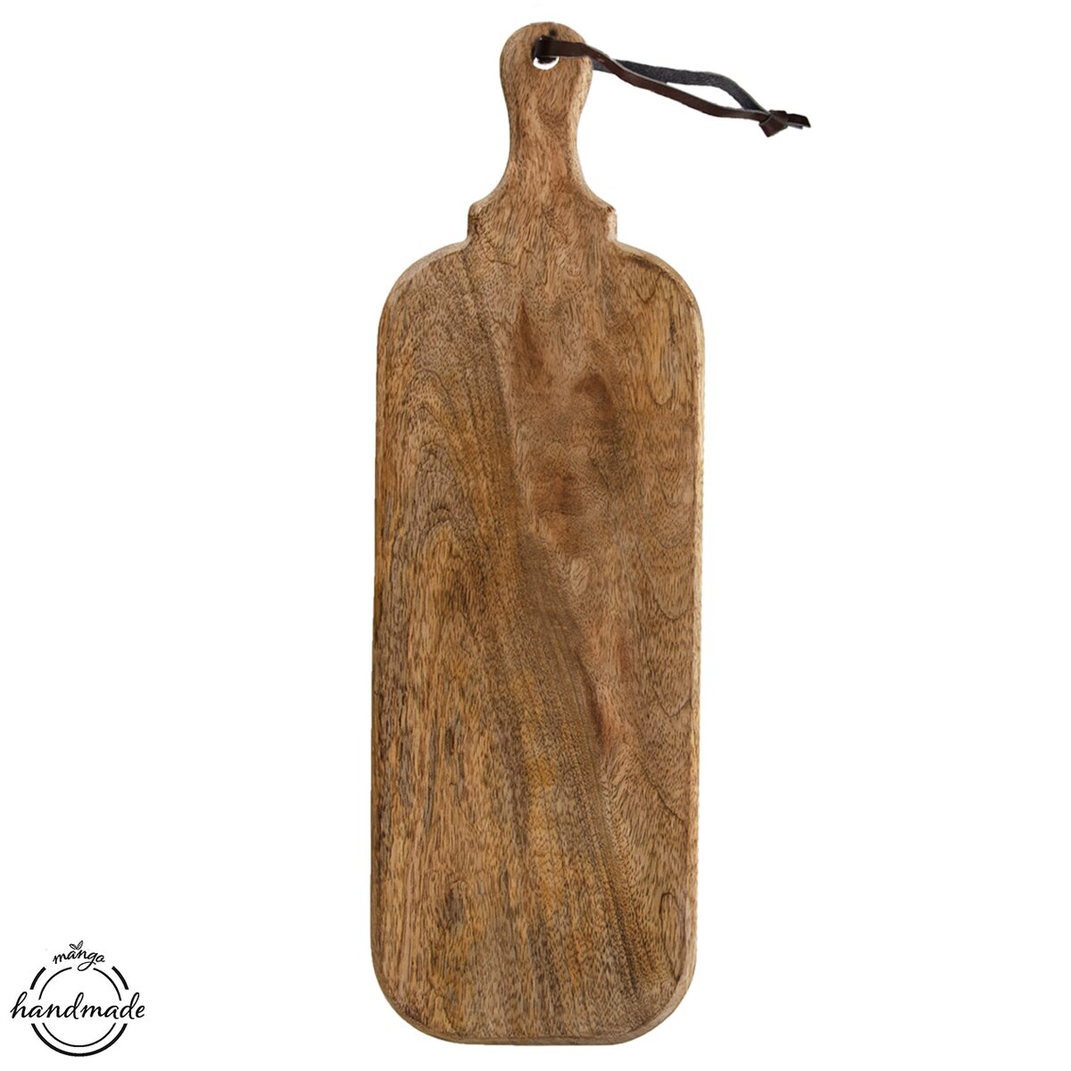Kód produktu 126831Kuchynská doska z mangového dreva s rukoväťou, s veľkosťou 50,5x16 cm, vhodná k štýlovému servírovaniu raňajok, večere alebo ako zaujímavá dekorácia na záhradnej oslave.