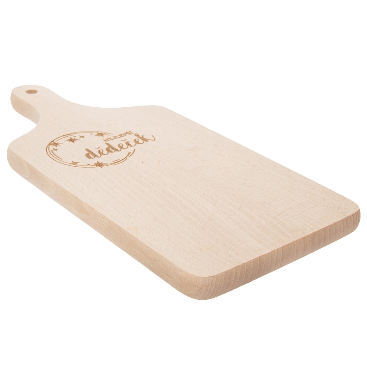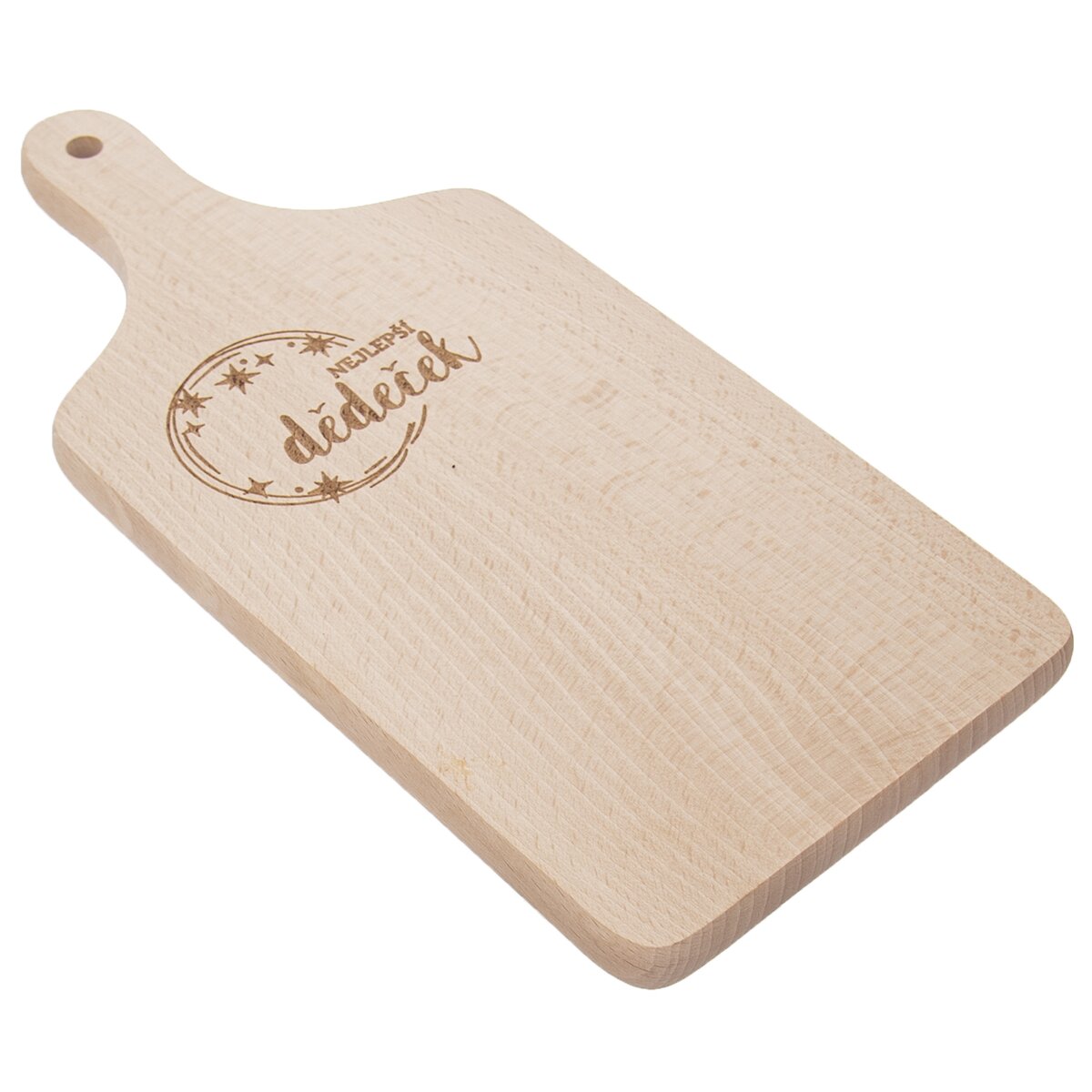 Kód produktu 126829Drevené doska na krájanie v rozmere 30×14 cm s praktickou rukoväťou a vypaľovaným dekorom NEJLEPŠÍ DĚDEČEK.