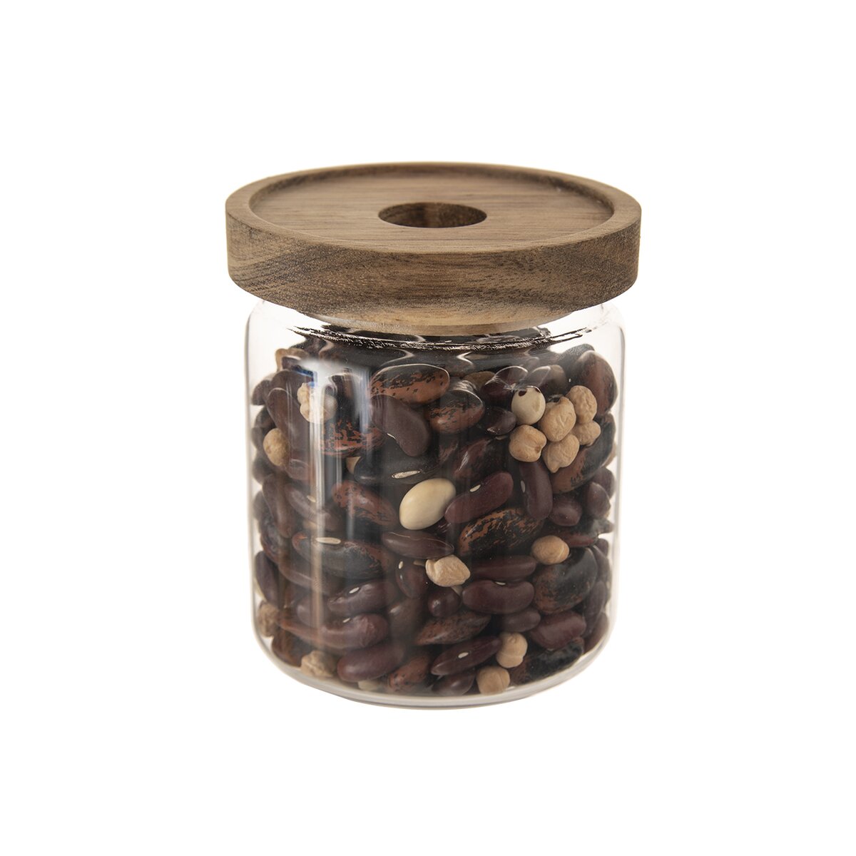 Kód produktu 154502Okrúhla sklenená dóza s objemom 0,73 l je vhodná na uskladnenie najrôznejších surovín na varenie a pečenie. Uzatvára sa viečkom z akáciového dreva, opatreného silikónovým tesnením.