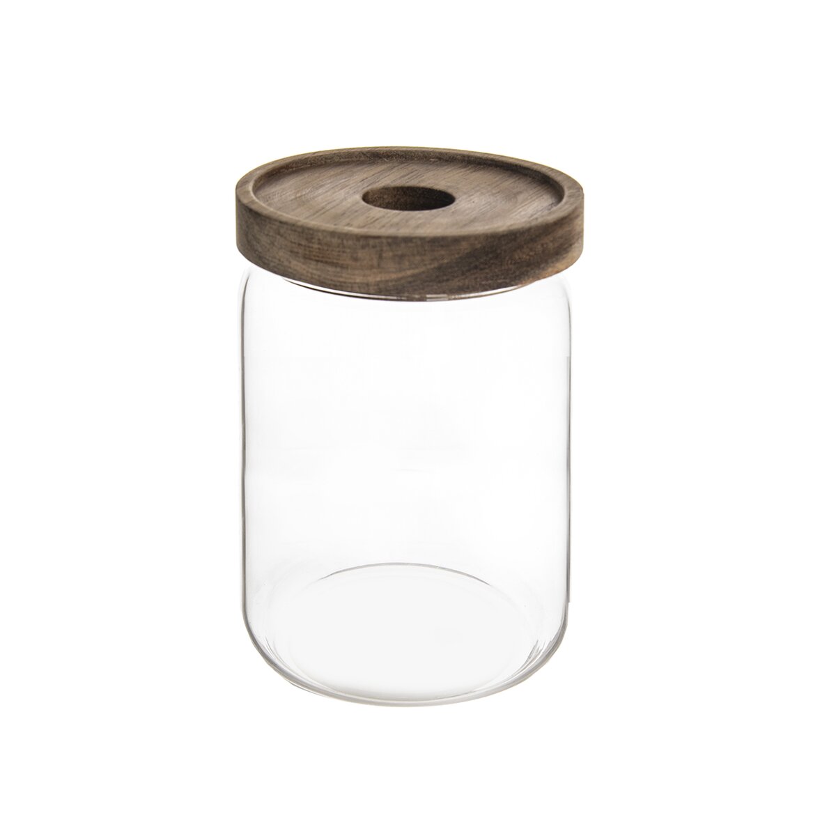 Kód produktu 154503Okrúhla sklenená dóza s objemom 0,97 l je vhodná na uskladnenie najrôznejších surovín na varenie a pečenie. Uzatvára sa viečkom z akáciového dreva, opatreného silikónovým tesnením.