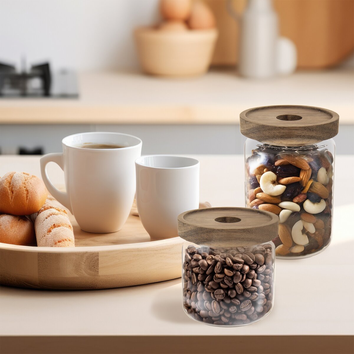 Navyše je uzavretá dizajnovým viečkom z akáciového dreva, ktoré je zo spodnej strany opatrené silikónovým tesnením, všetko si tak zachová arómu a dovnútra sa nedostane vlhkosť.