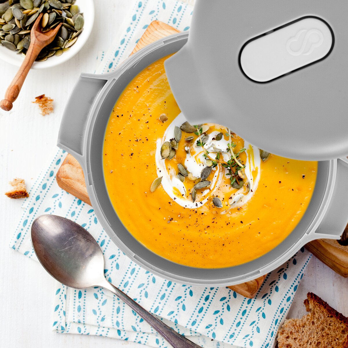 ClipFresh dóza na polievku s viečkom Vám pomôže pripraviť polievku v MVT v priebehu niekoľkých minút. Viečko s ventilom pre postupné vypustenie pary. Materiál: kvalitný plast bez BPA. Vhodná do umývačky riadu, MVT, chladničky i mrazničky (-20°C až 120°C). Rozmery: objem 0,65 l, 14x11x9 cm. Návod postupu je súčasťou balenia.