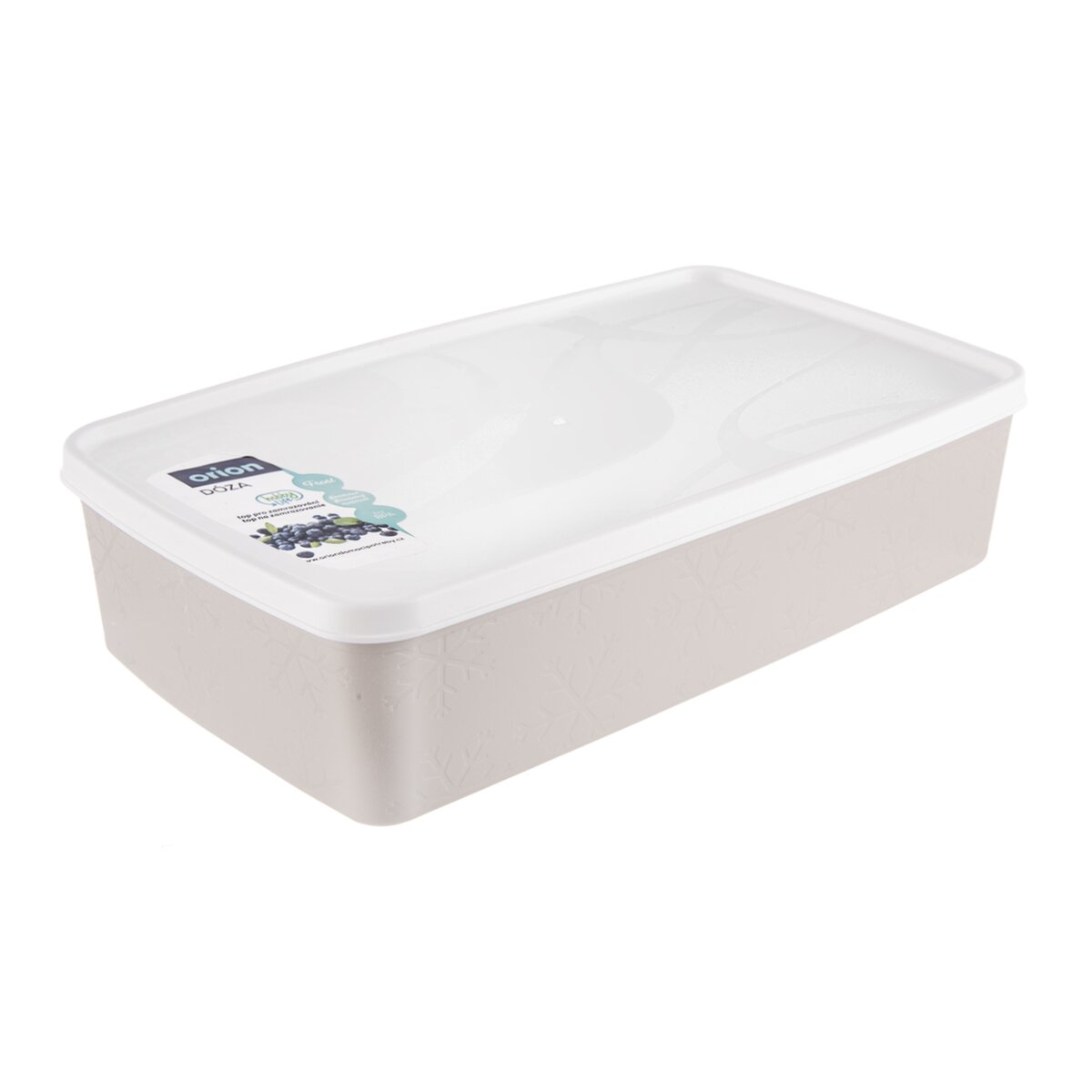 Kód produktu 127918Plastová dóza FROST s objemom 2 l s bielym viečkom má béžový odtieň s dekorom vločiek. Vhodná na ukladanie potravín v mrazničke a chladničke.